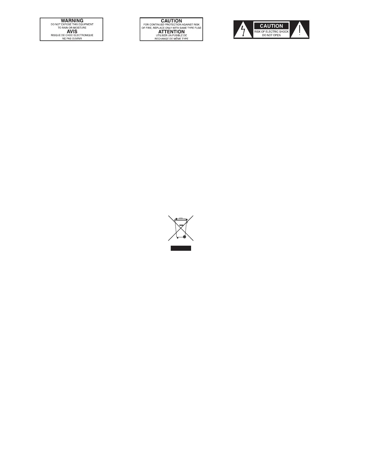 WARNING: To reduce the risk of fire or electric shock, do not expose this unit to rain