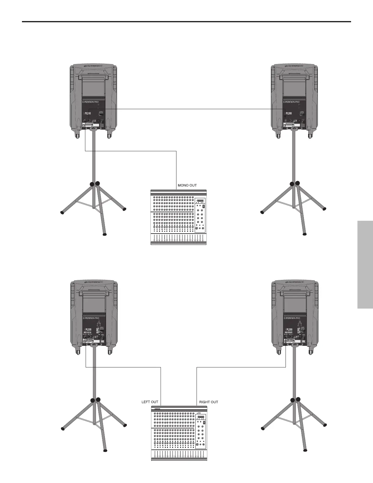 Stereo-Betrieb zweier XPL200: Den linken Kanal eines Stereo-Signals (Bus oder Aux-Send), das vom Mischer kommt, mit dem
