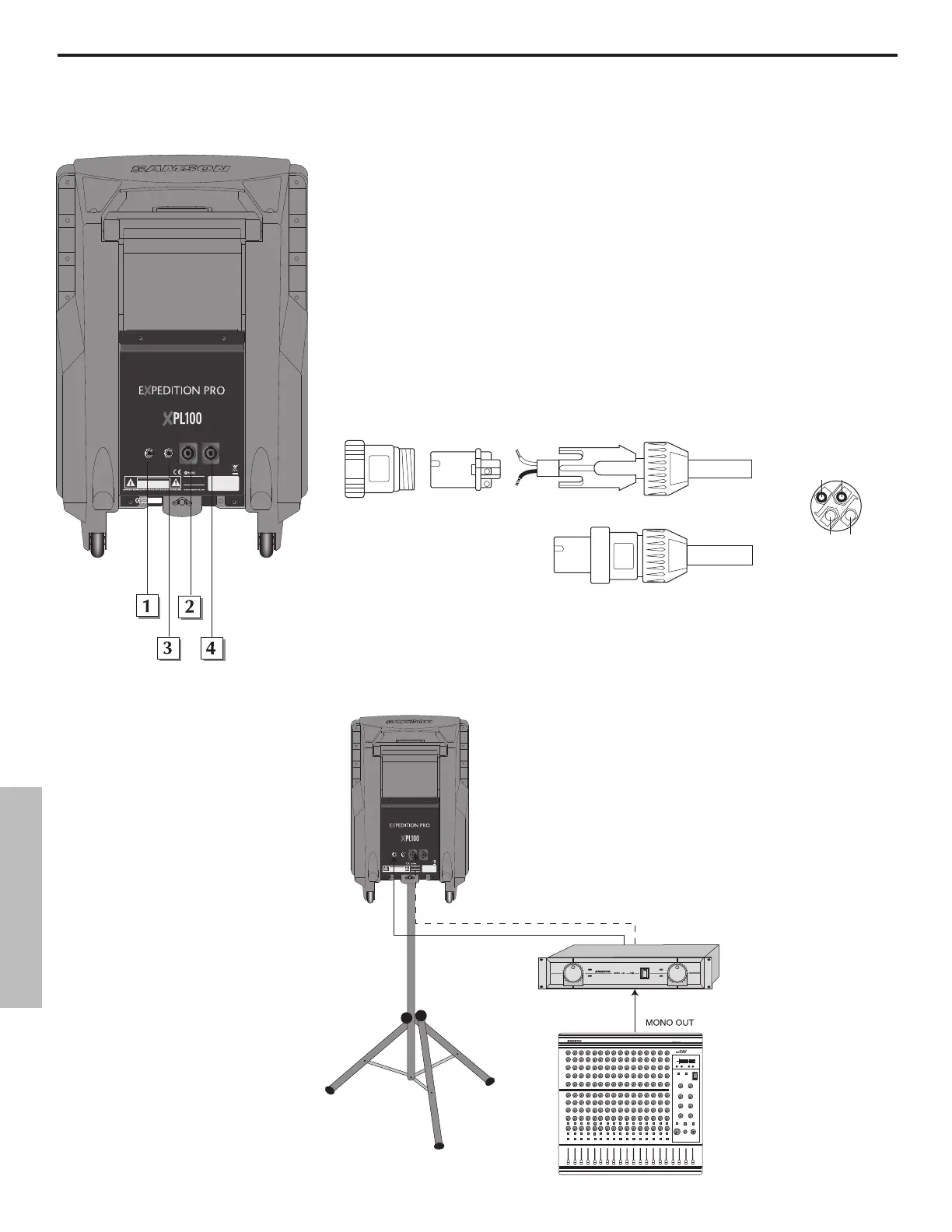 4: Extensión Speakon™ - Utilice este conector Speakon™ para conectar en serie un XPL100