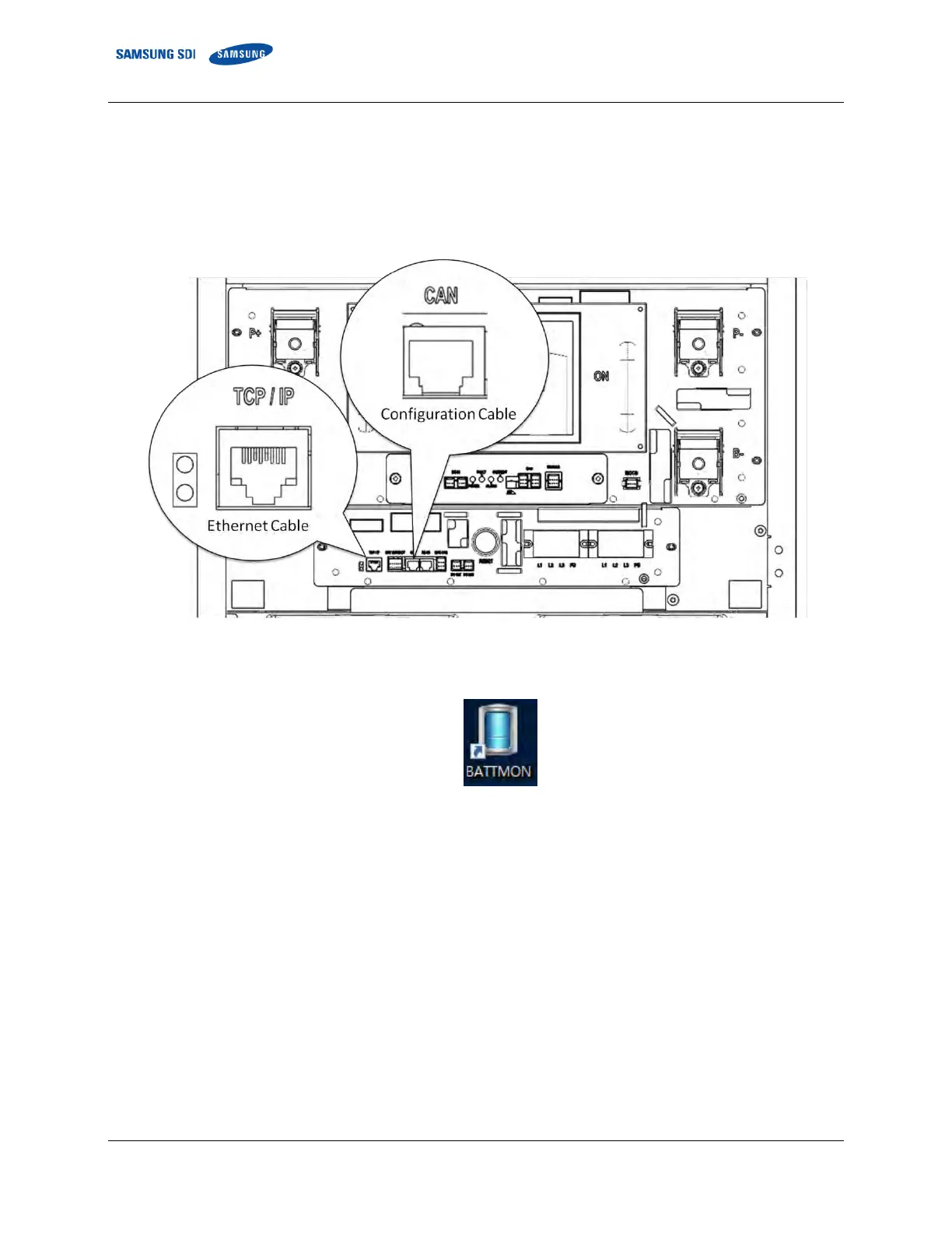 1. Connect both an Ethernet cable and a configuration cable from the system BMS to your computer as shown in the figure