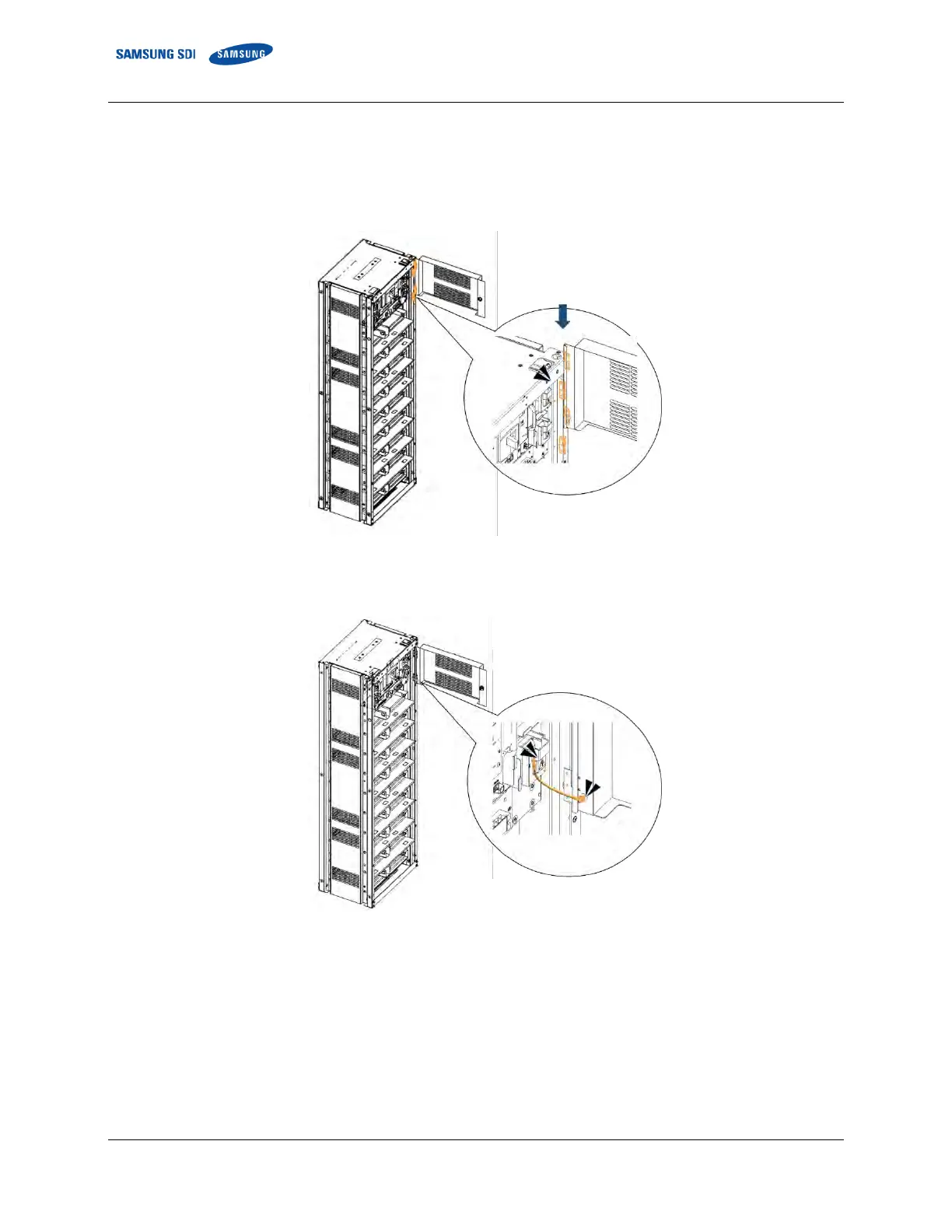1. Reinstall the front door to cover the battery rack and prevent further access to high voltage parts of the SMU and SMPS