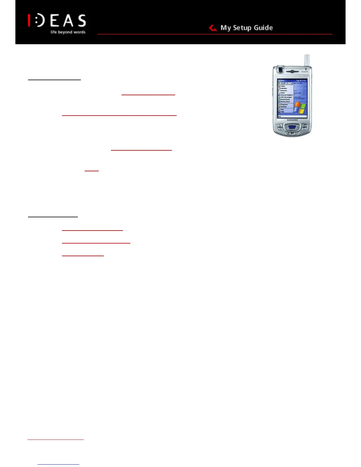 Welcome to the setup guide for IDEAS (GPRS) via your Samsung I700. This is where we