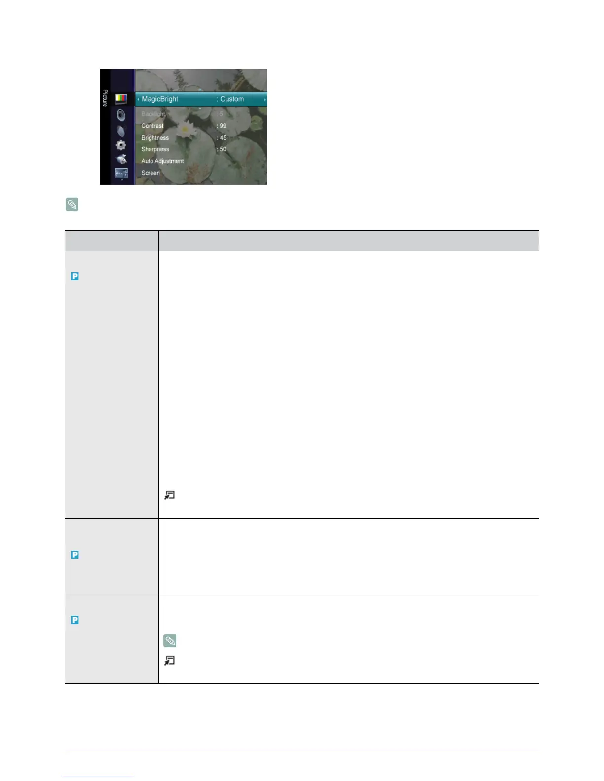 MagicBright <MagicBright> is a feature providing an optimum viewing environment depending on the contents of