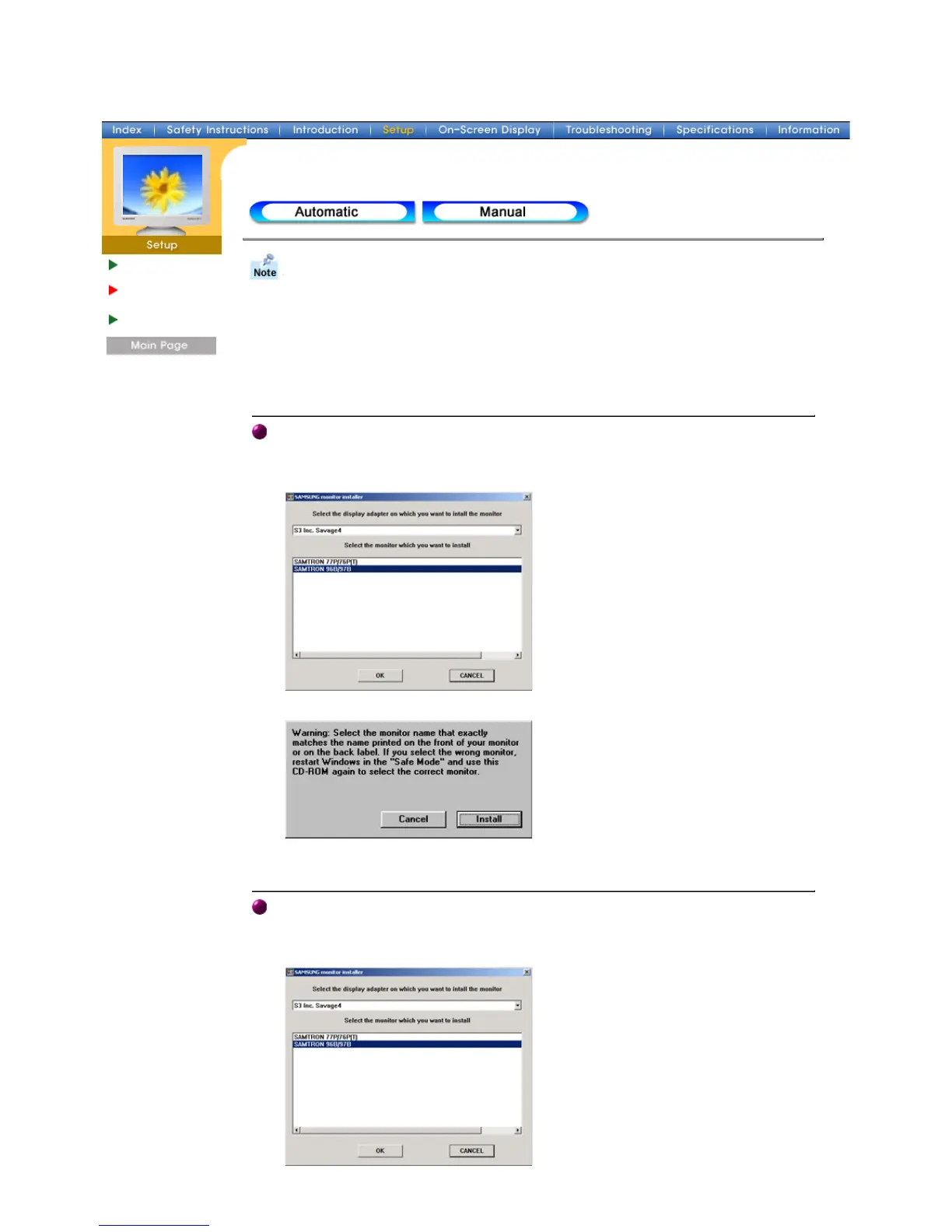 Main > Setup > Installing the Monitor Driver
