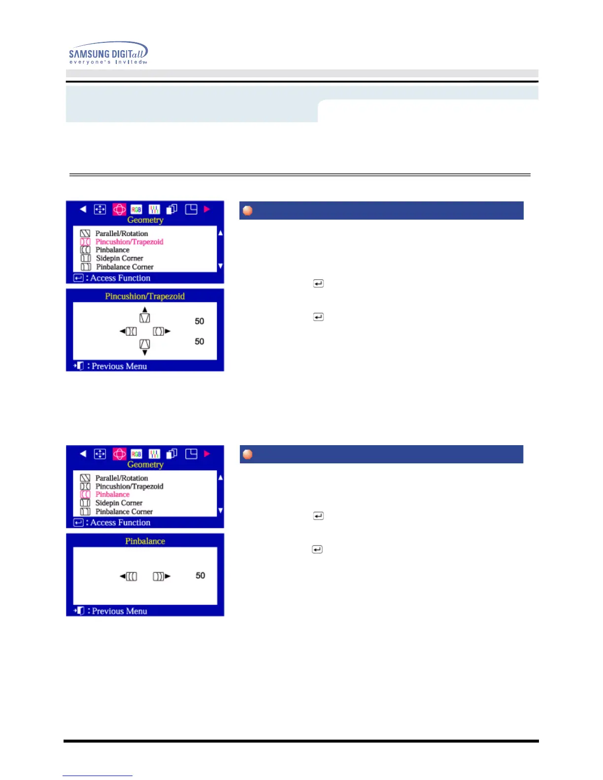 3 Push the Menu ( ) button to open the Pincushion/Trapezoid