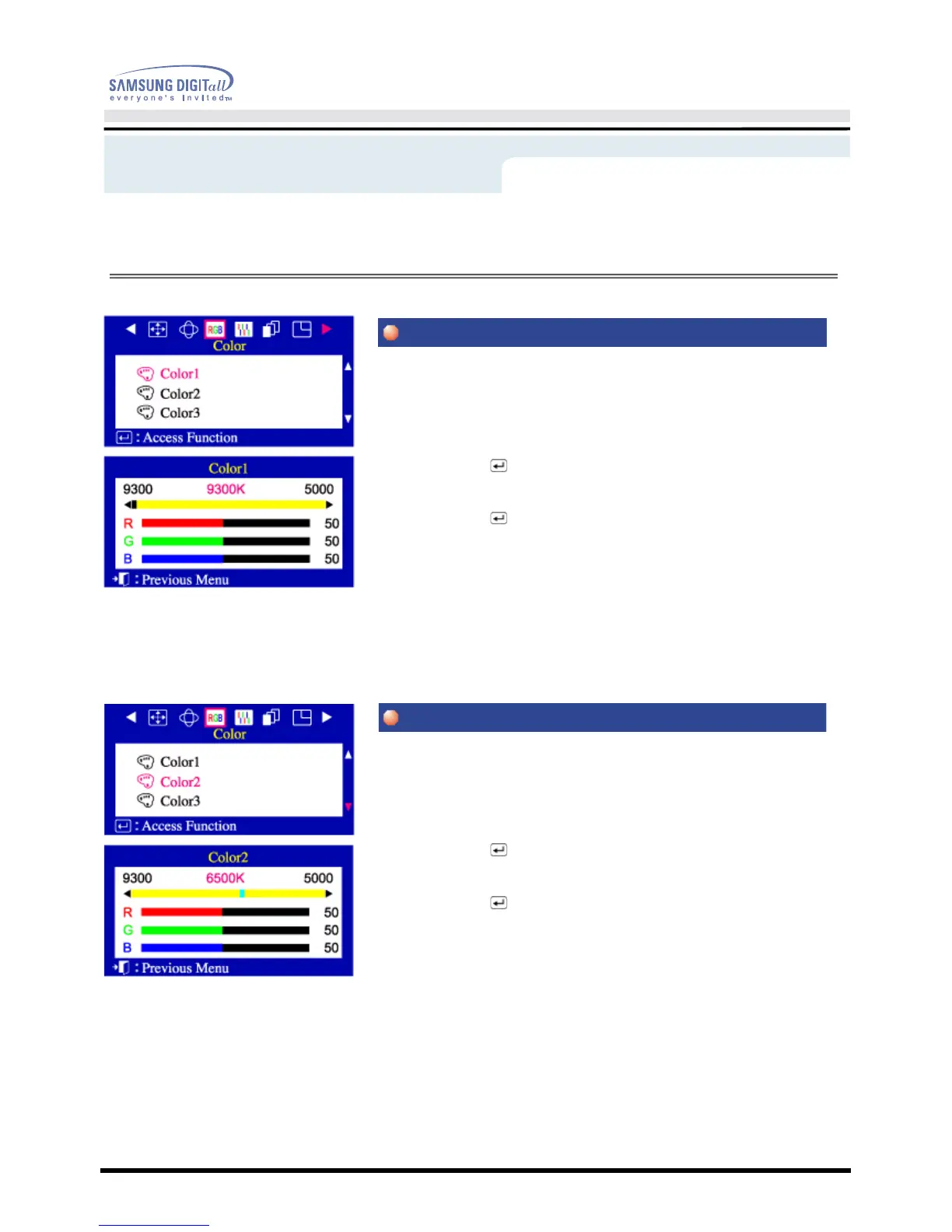 3 Push the Menu( ) button to open the Color1 adjustment screen.