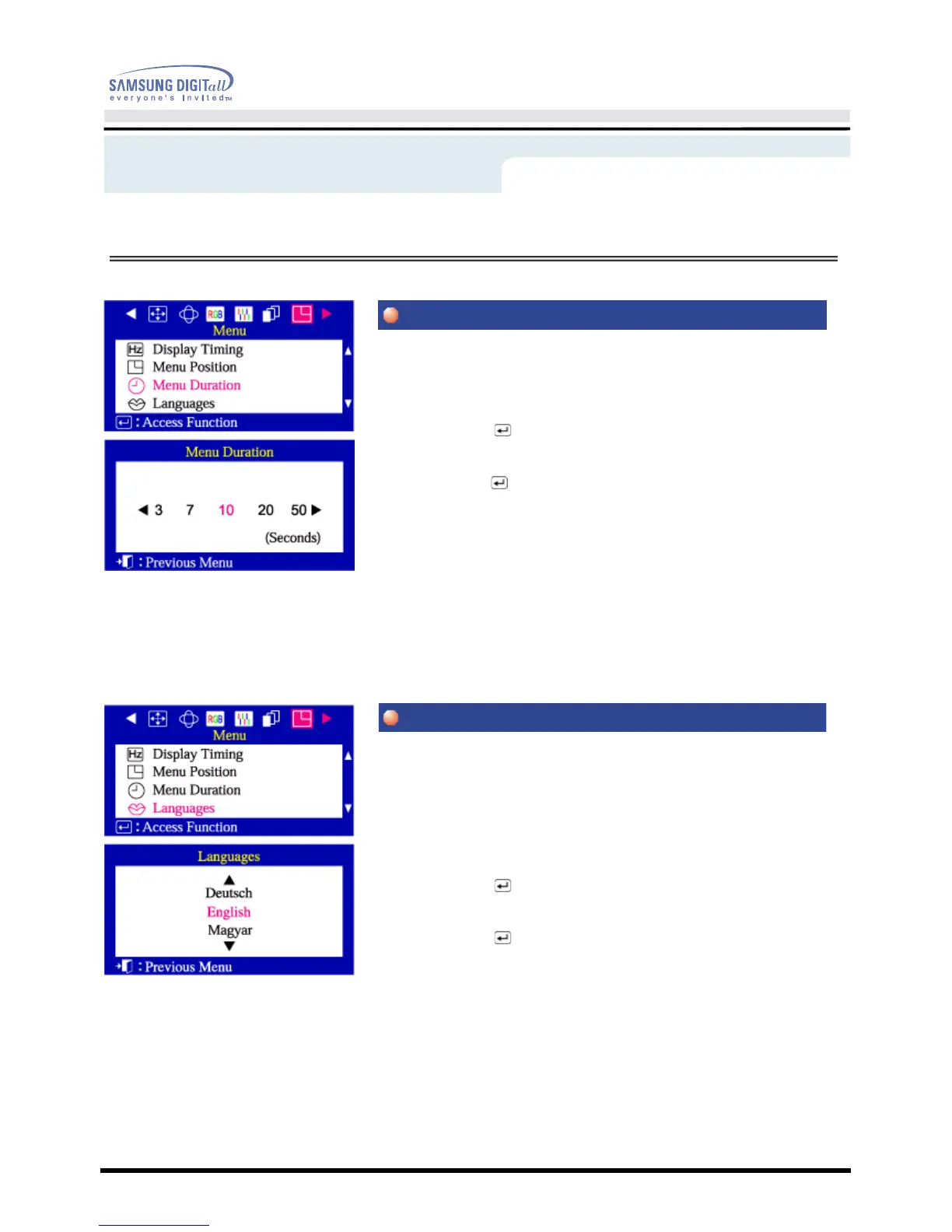 button to select Menu Duration.