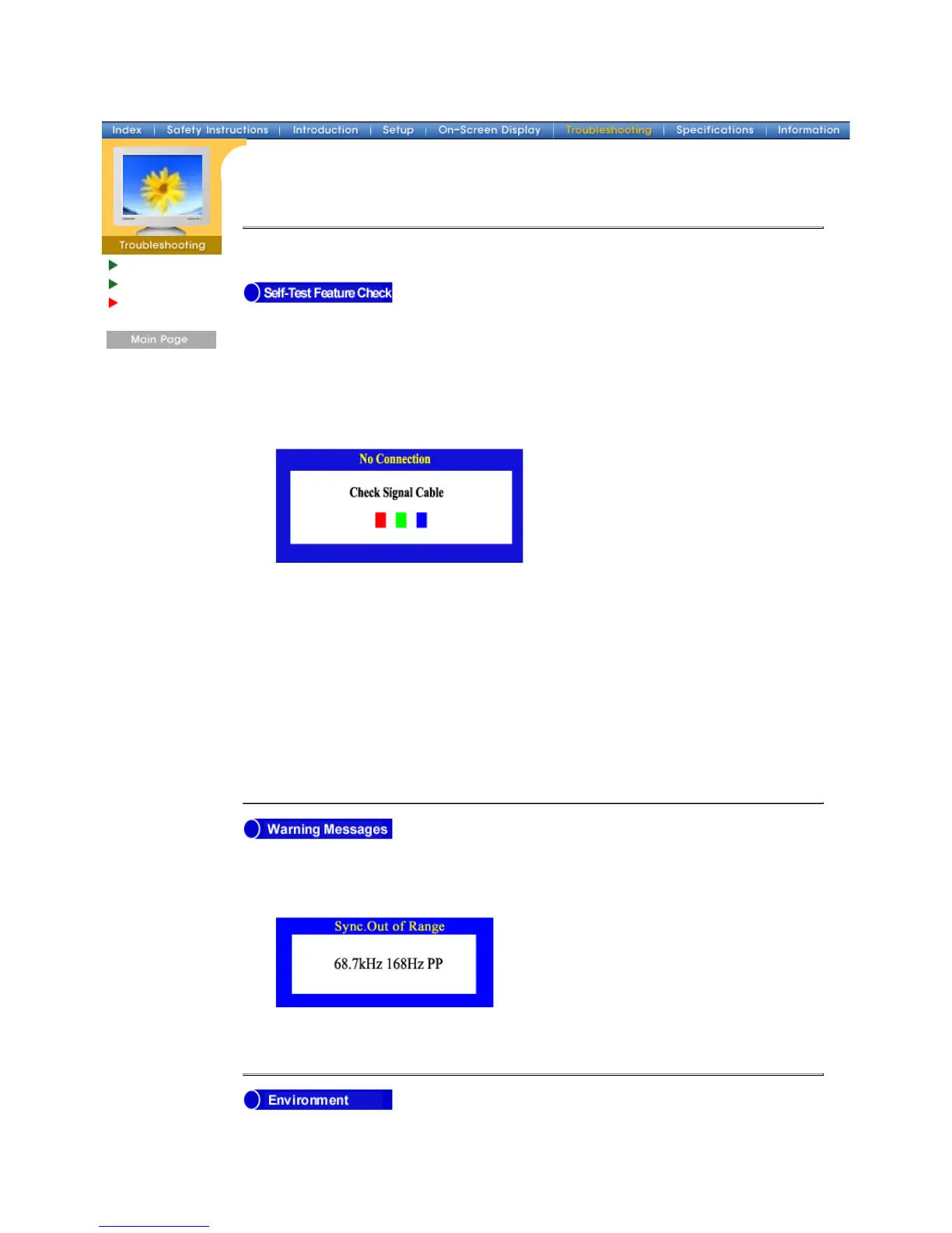 Your monitor provides a self test feature that allows you to check whether your monitor is