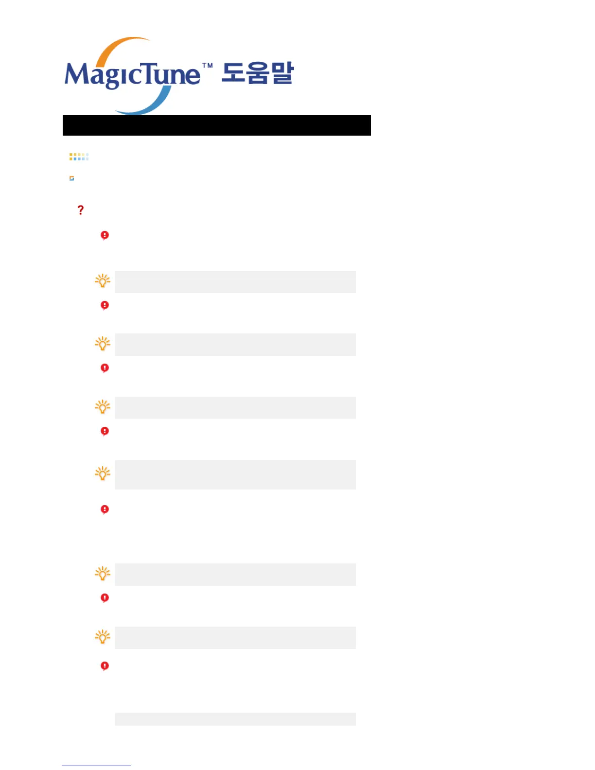 확인을 누르신 후 “MagicTune Site 바로가기”를 눌러 홈페이지를 참조하세요.