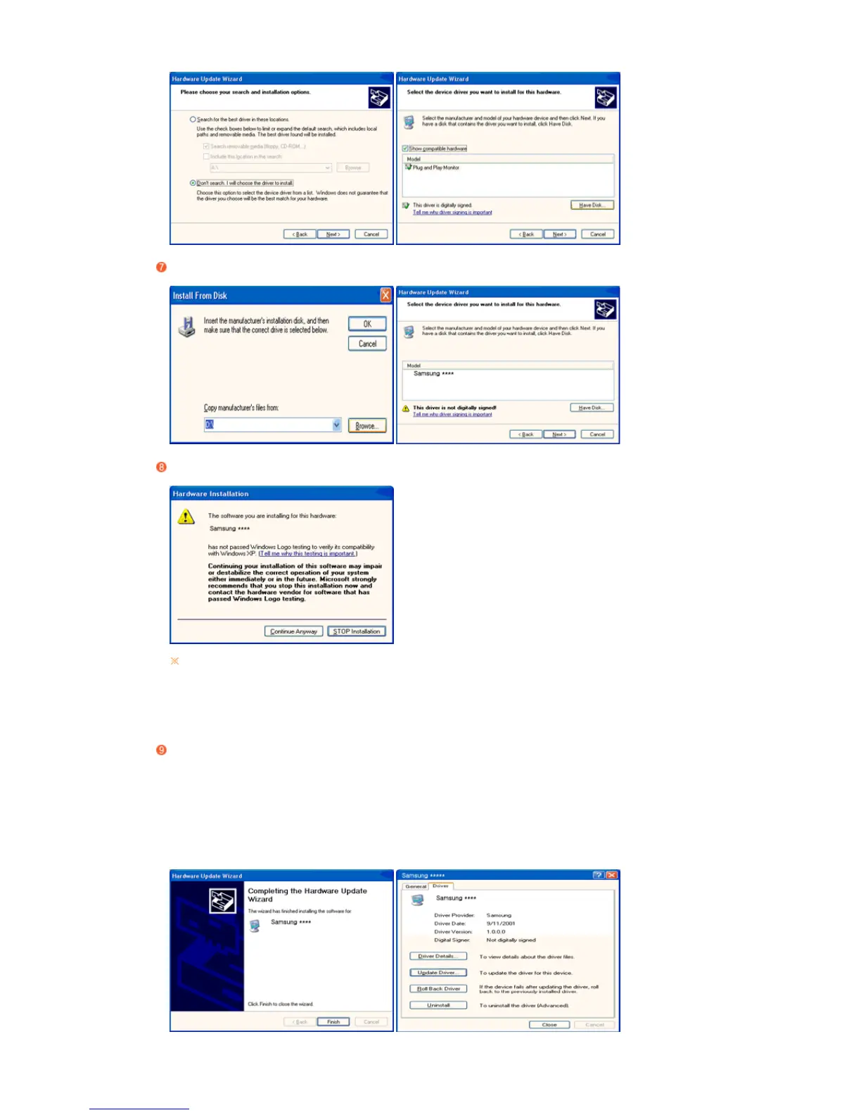 El controlador certificado será puesto en la Página Web del Monitor Samsung.