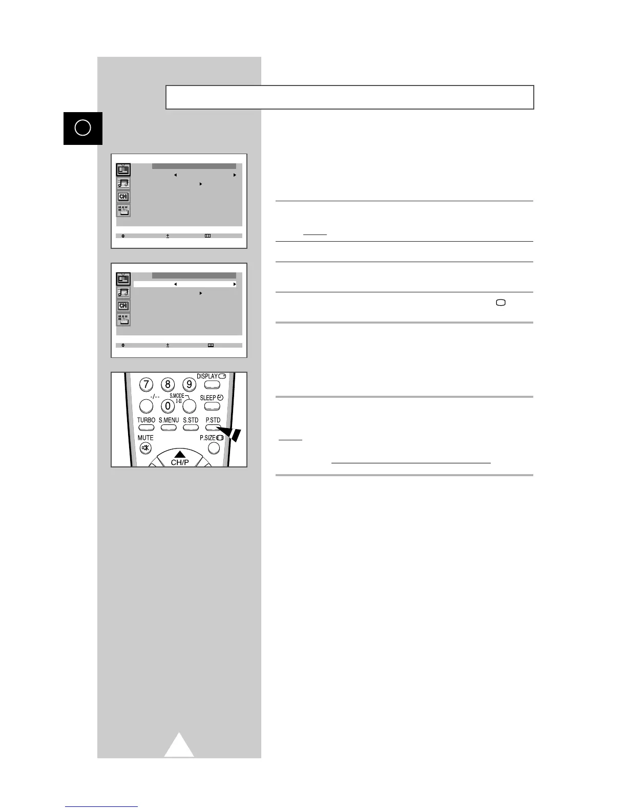 To select the required picture effect, simply press the P.STD (Picture