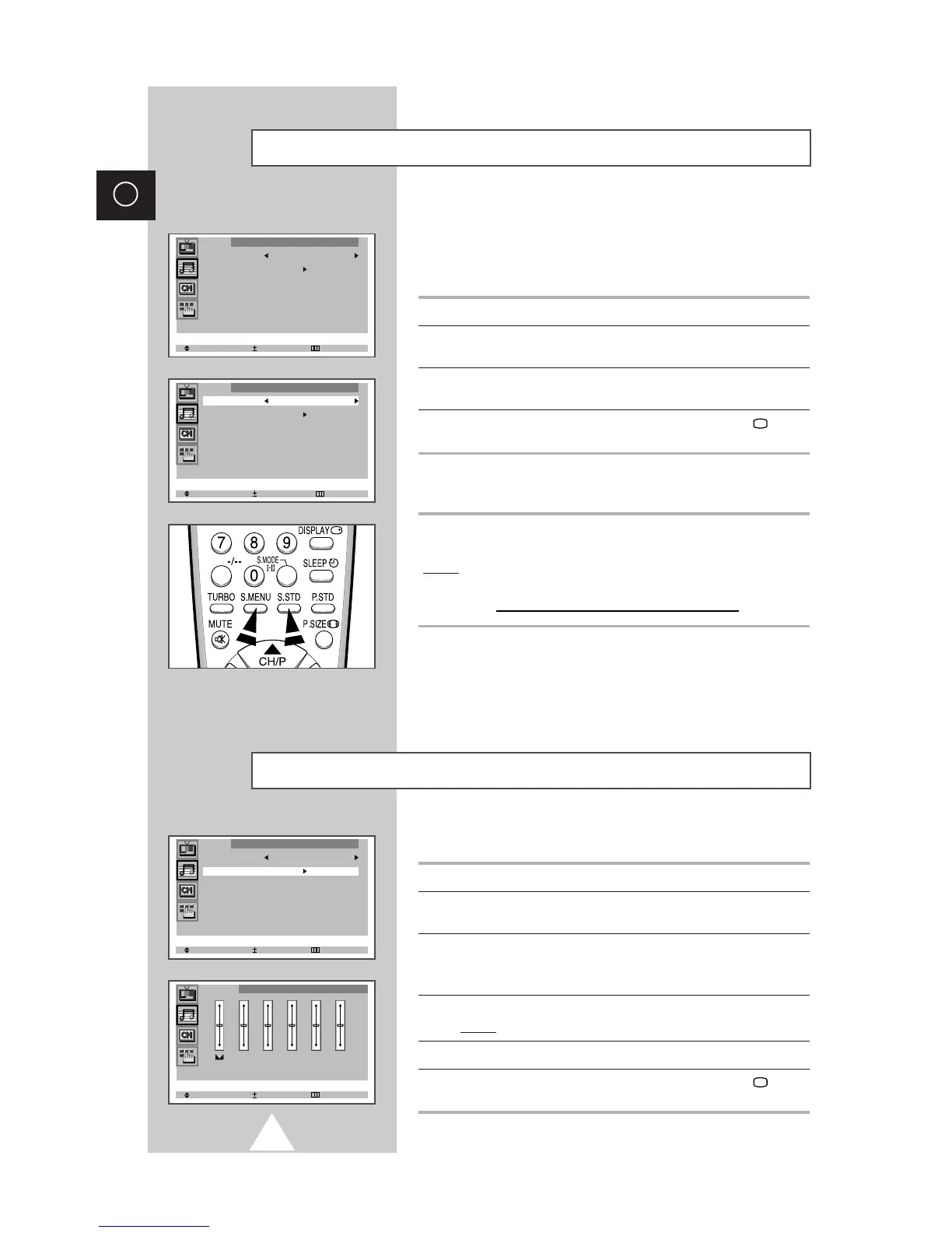 Changing the Sound Standard (depending on the model)