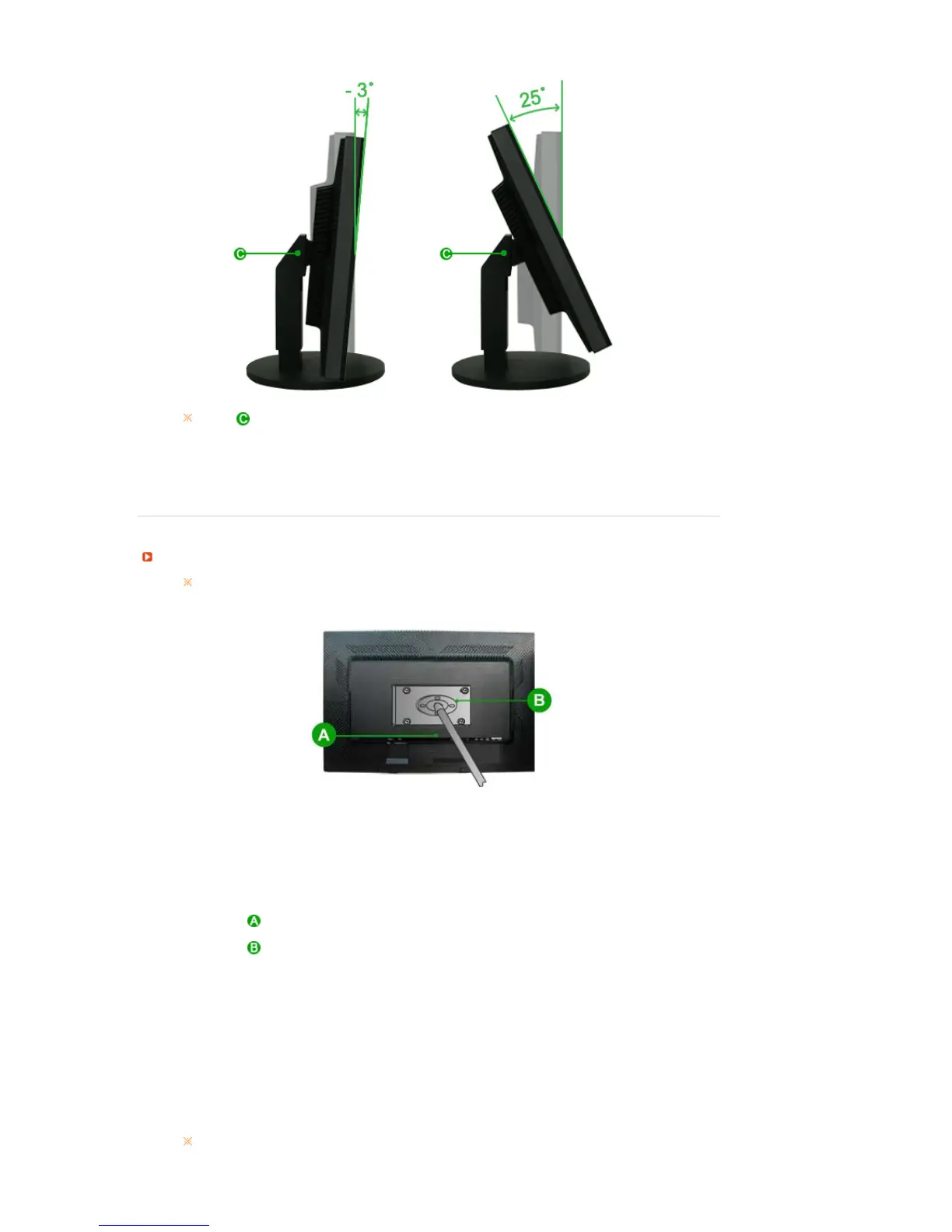 Using ( ), You can adjust the tilt anlgle within a range of 3° forward to 25° backward for
