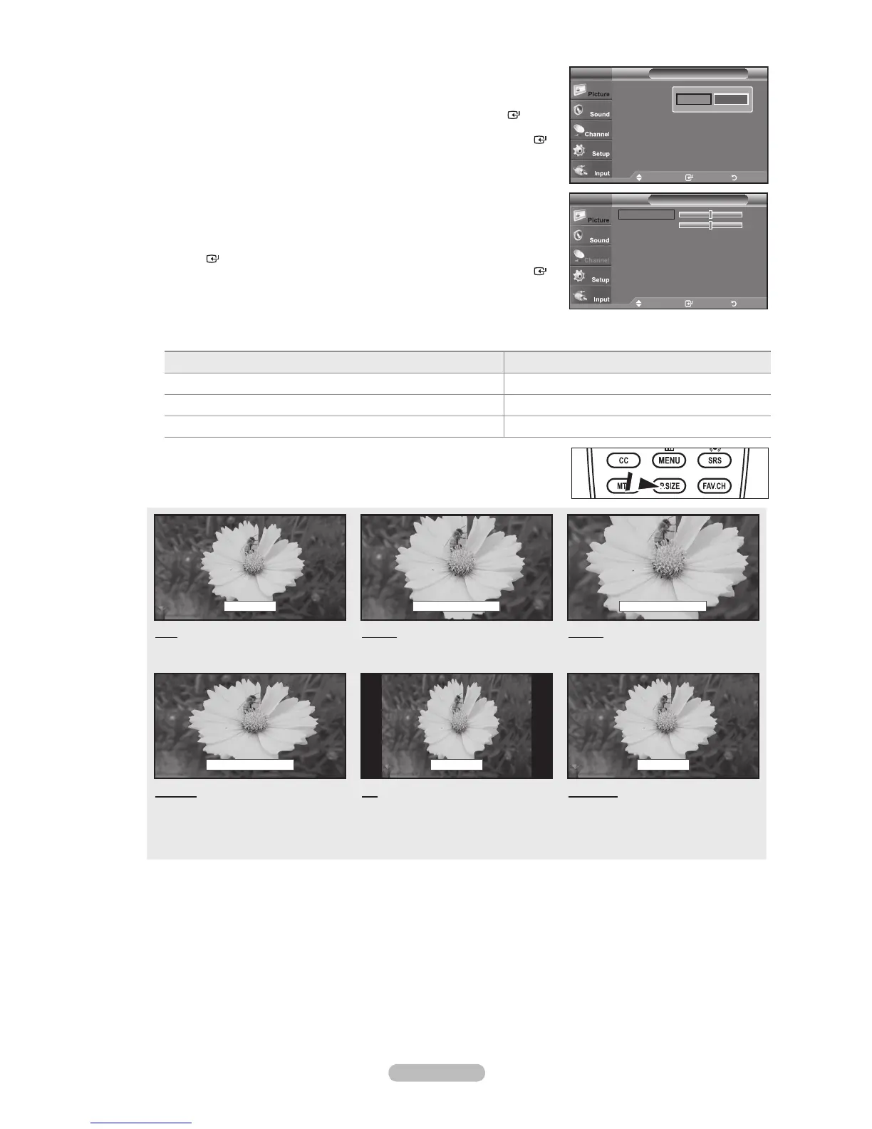 Alternately, you can press the P.SIZE button on the remote control repeatedly to