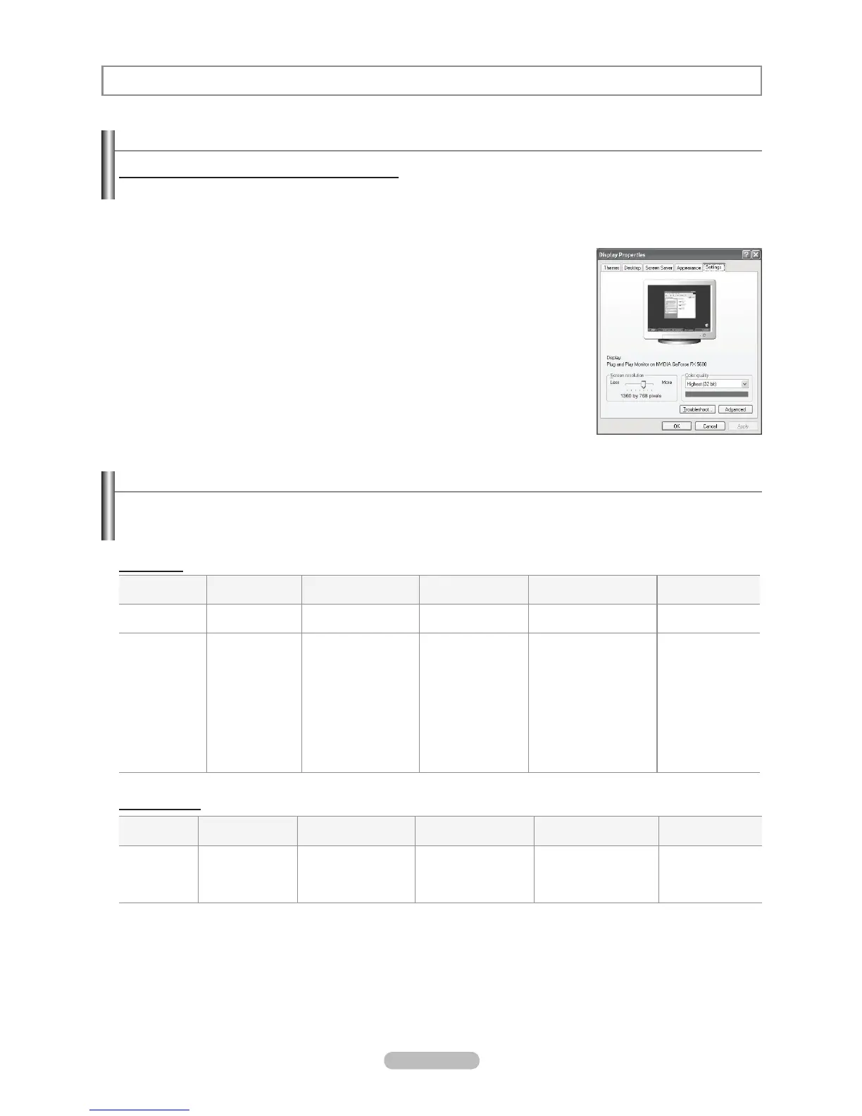 video. For the display modes listed below, the screen image has been optimized during manufacturing.