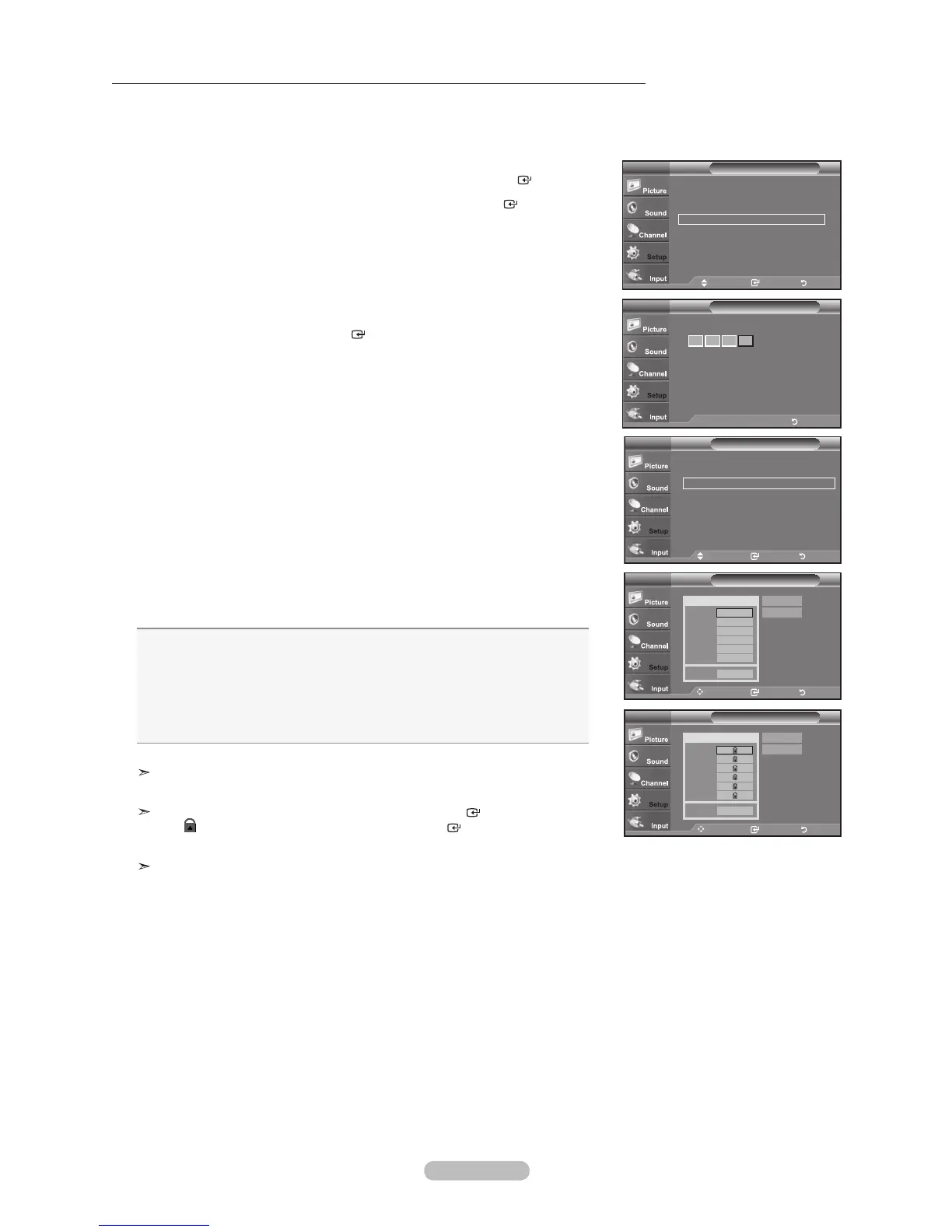 3. The “V-Chip” screen will appear. Press the