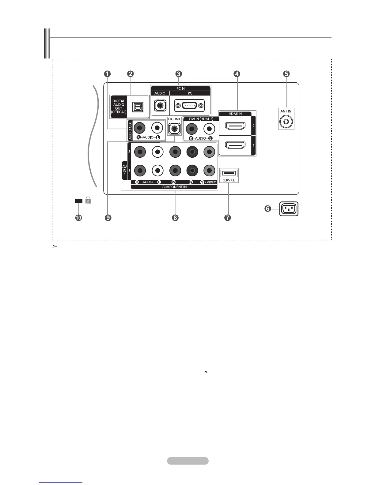 Use the connection panel jacks to connect A/V components that will be connected continuously, such as DVD players or a VCR.