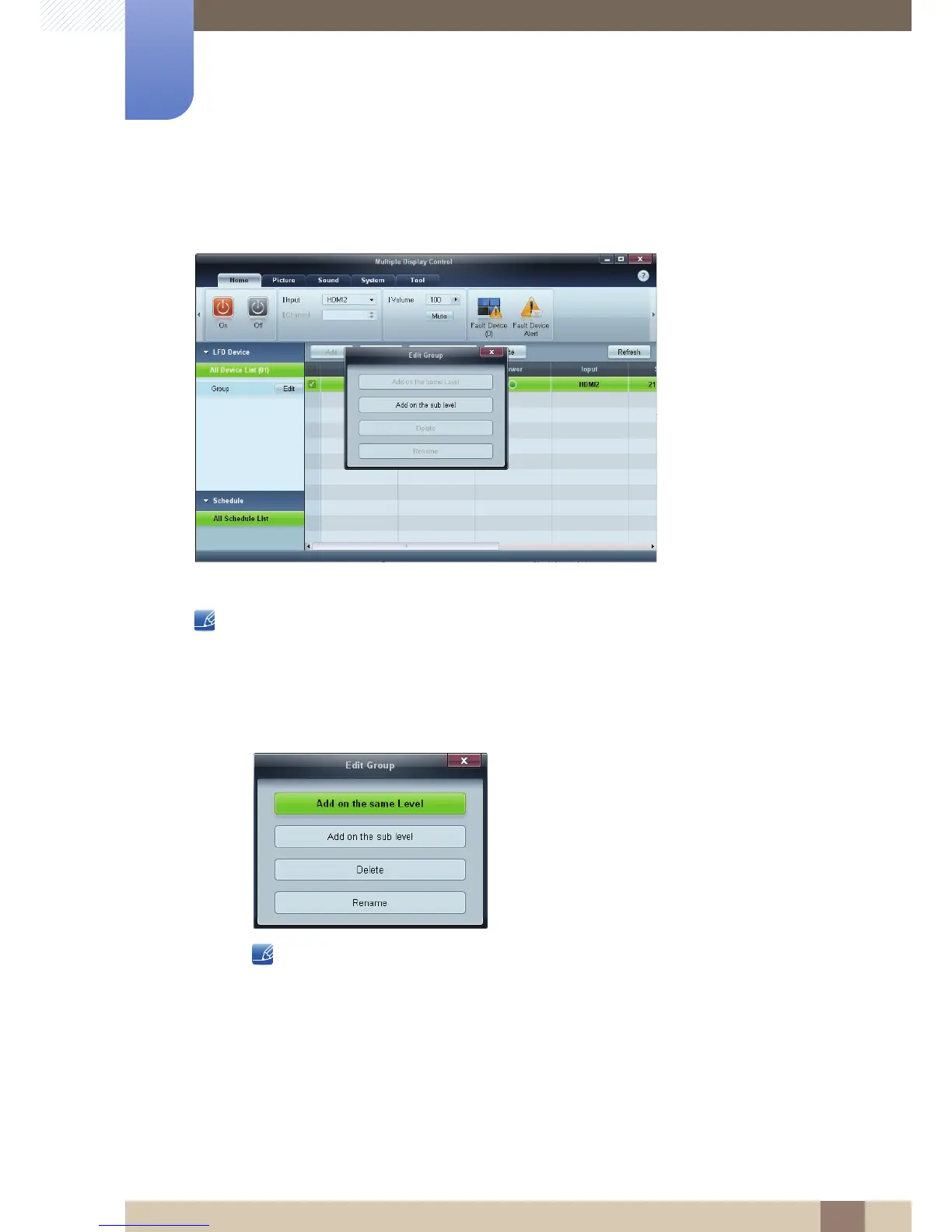 1 Right-click and select Group>Edit in the display device list section on the left side of the program
