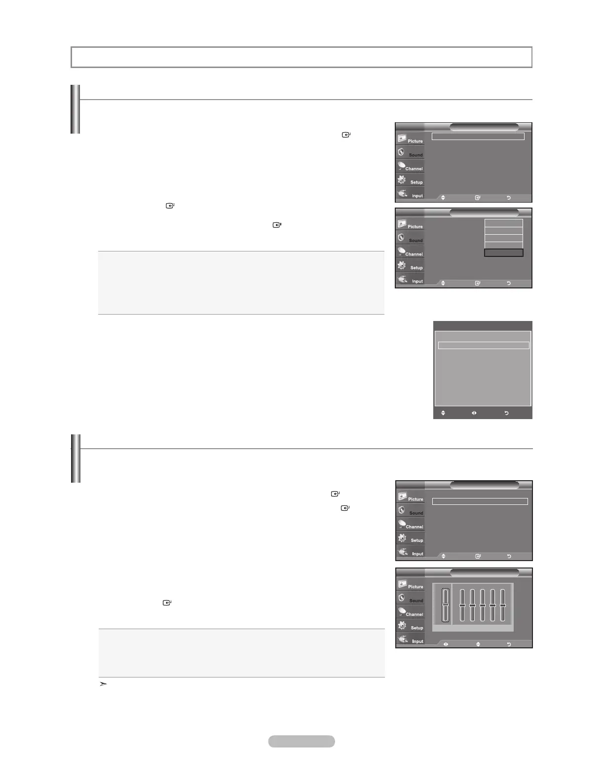 Press the or button to increase or decrease the level of the particular frequency.