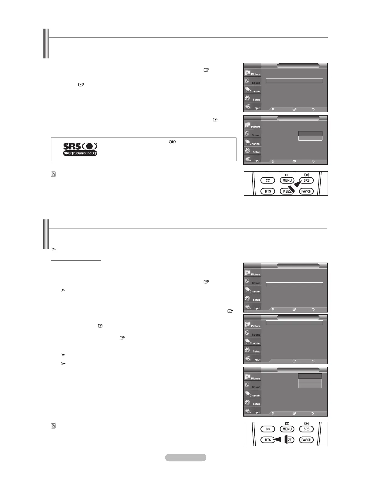 2. Press the or button to select "SRS TruSurround XT", then press the