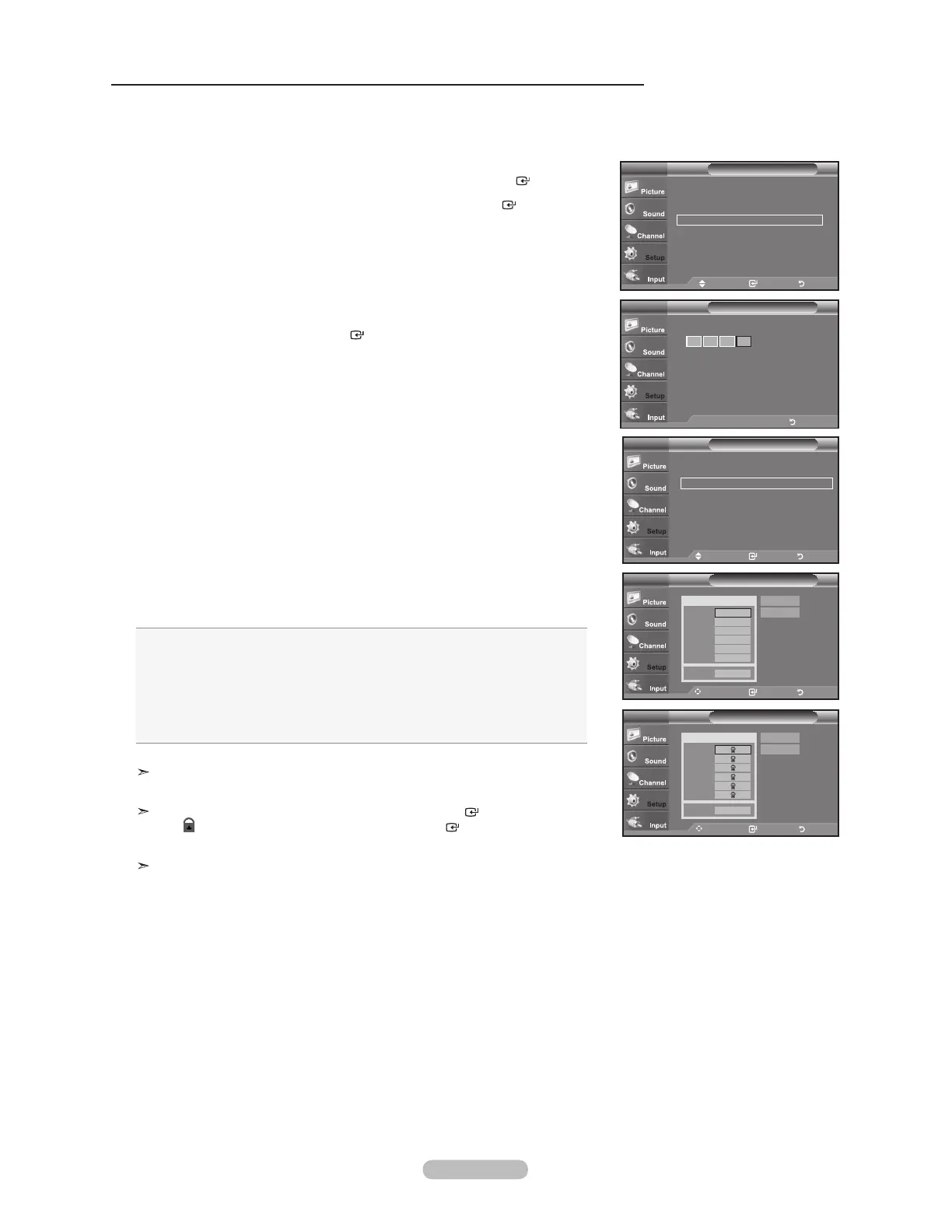 3. The “V-Chip” screen will appear. Press the
