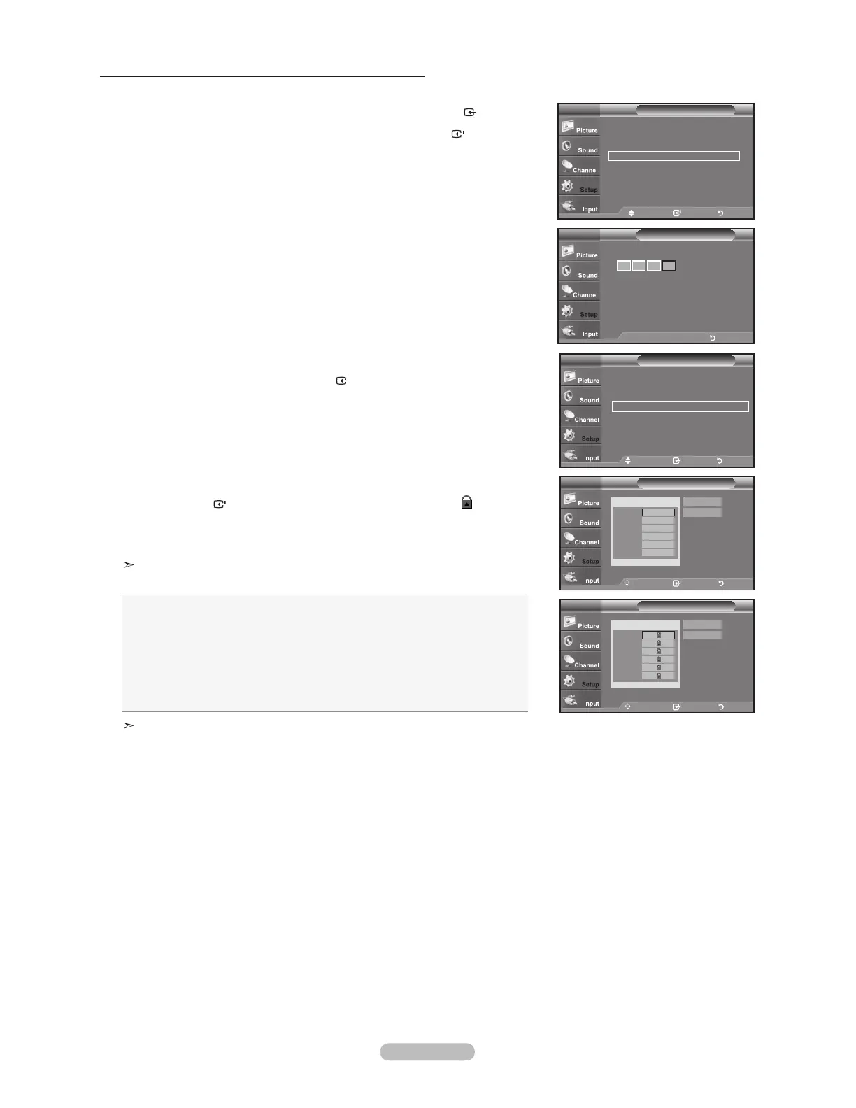3. The “V-Chip” screen will appear. Press the