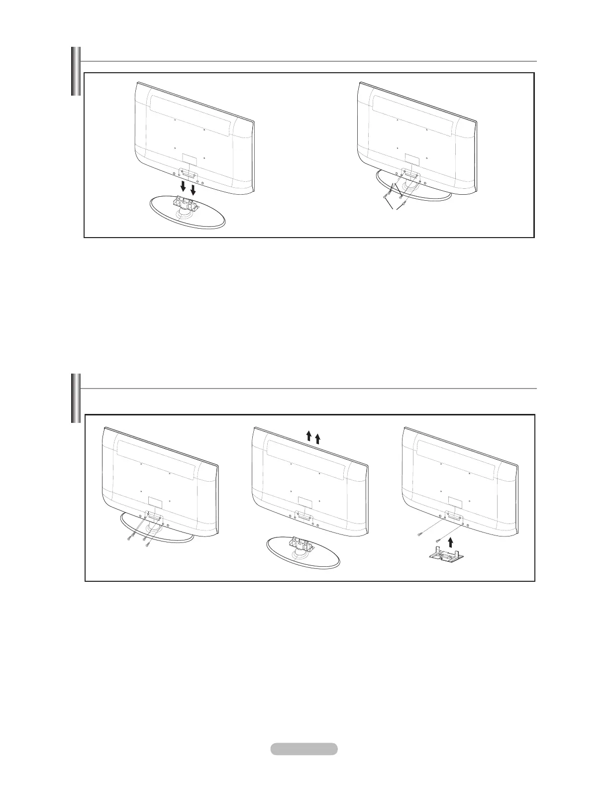 To make sure the TV is installed on the stand at a proper level, do not apply excess downward pressure to the upper left