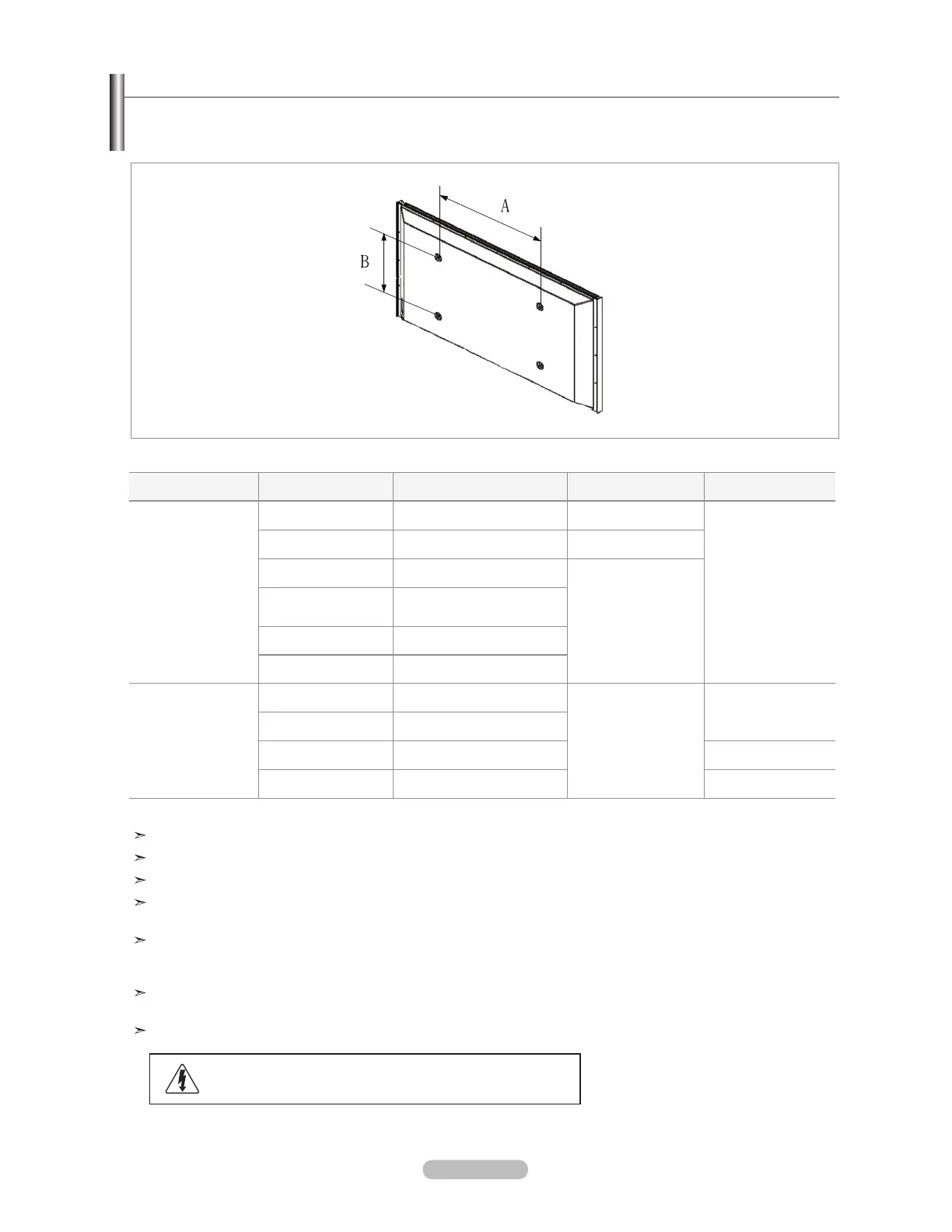 Do not use screws that do not comply with the VESA standard screw specifications.