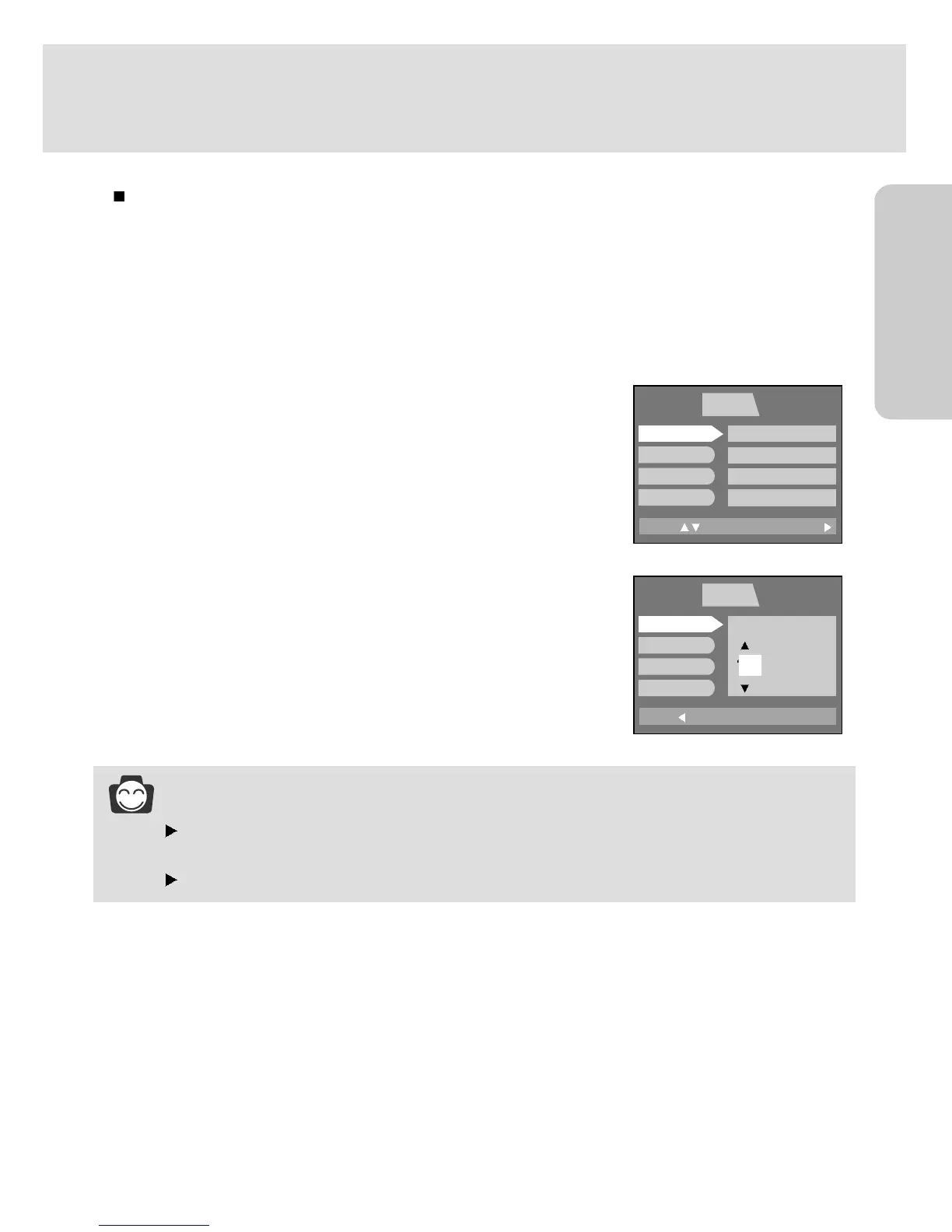 Press the DOWN / button again and the next menu page will be