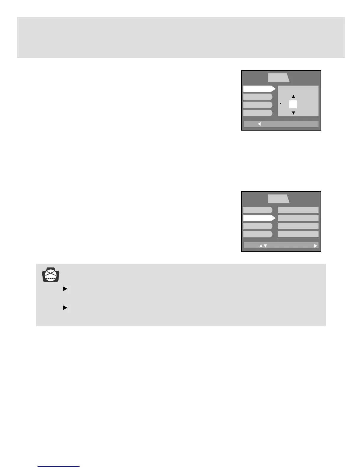To return to the main menu or cancel the setting, press the LEFT button.