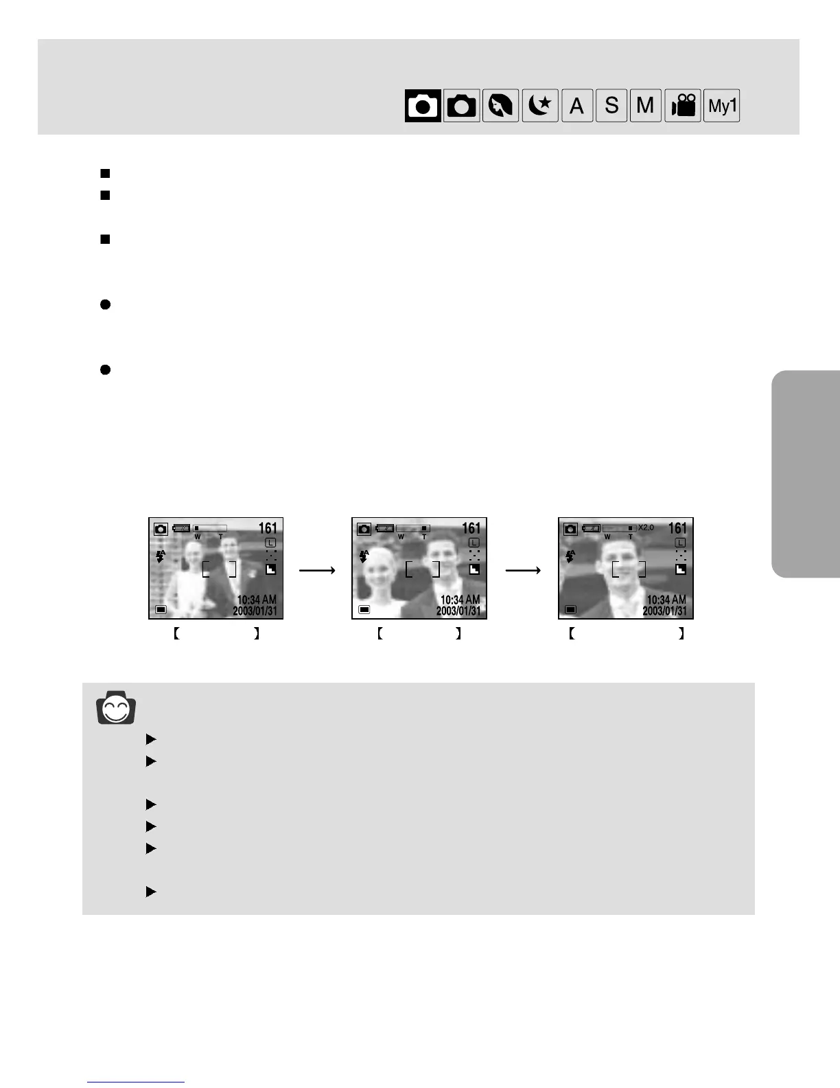 - You can check the digital zoom rate with the [X1.5 ~ X 4.0] numerical mark next to the zoom bar.