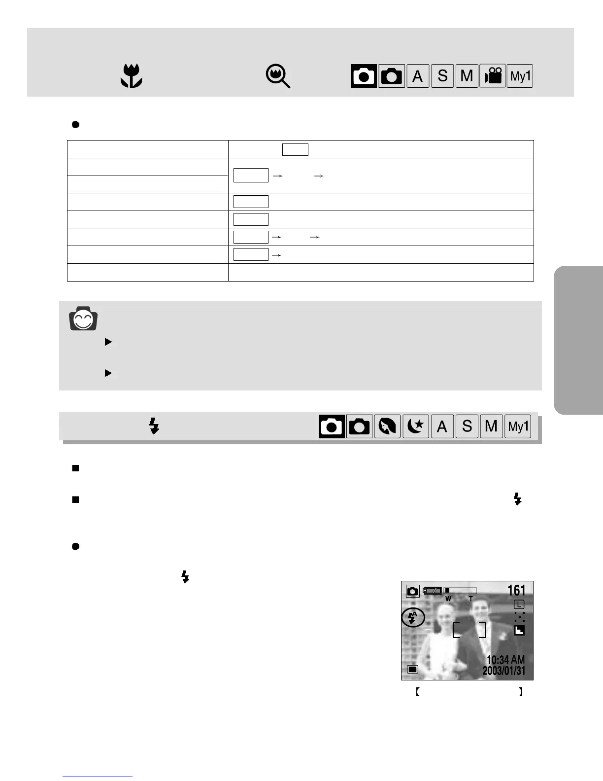 2. Press the FLASH ( ) button until the desired FLASH