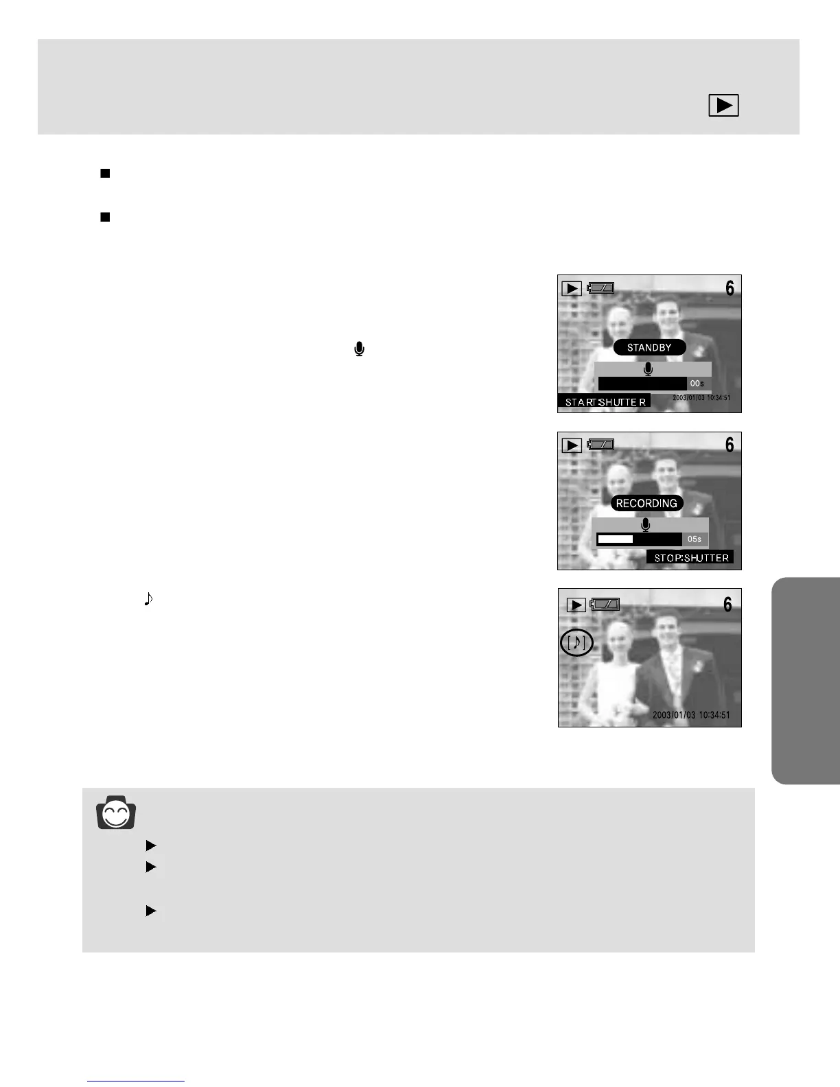 When you press the shutter button to stop the audio recording, press the shutter button