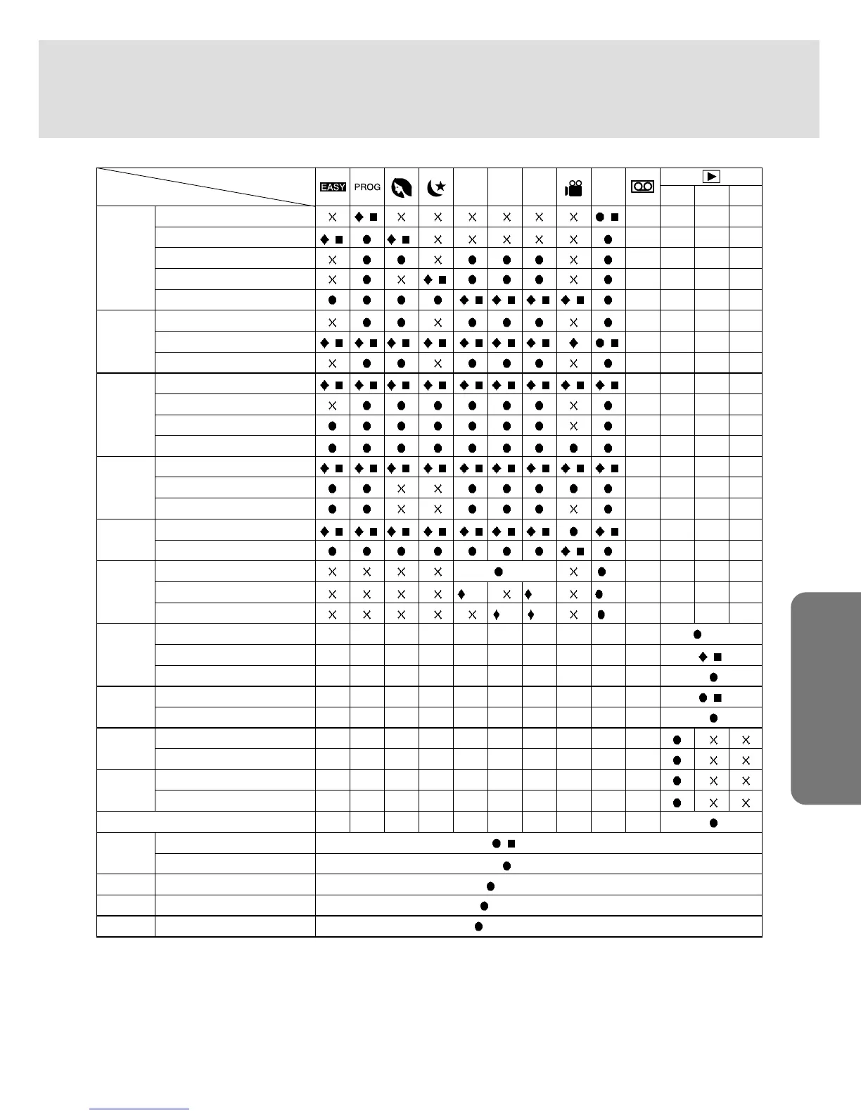 List of camera function