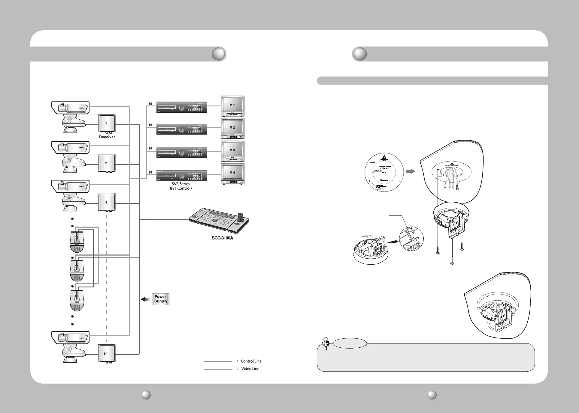 diameter marked on the template. Drop the camera cables down from the ceiling through