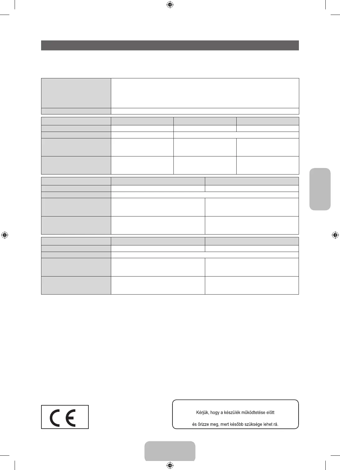 típusú SAMSUNG gyártmányú színes televíziók megfelelnek az alábbi mûszaki jellemzôknek: