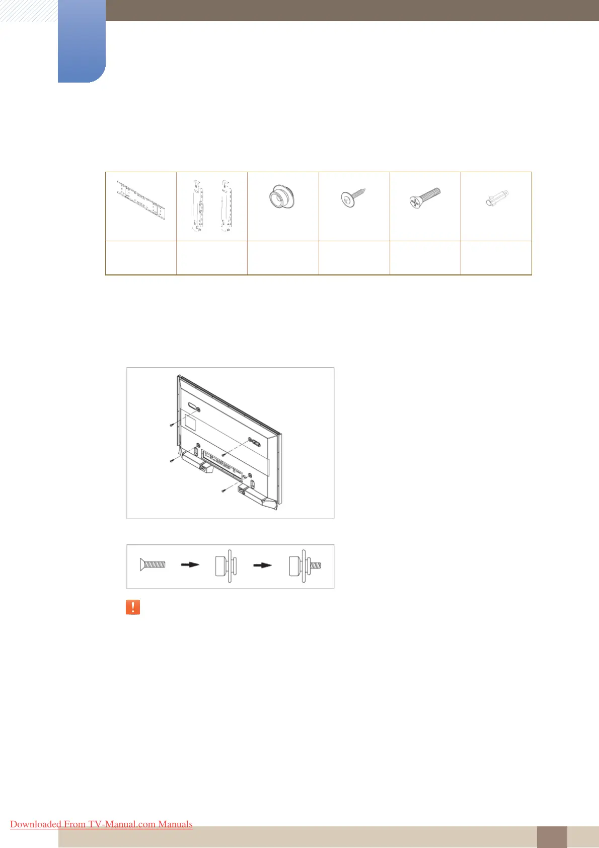 Be sure to use only the components and parts provided with your bracket for installation.