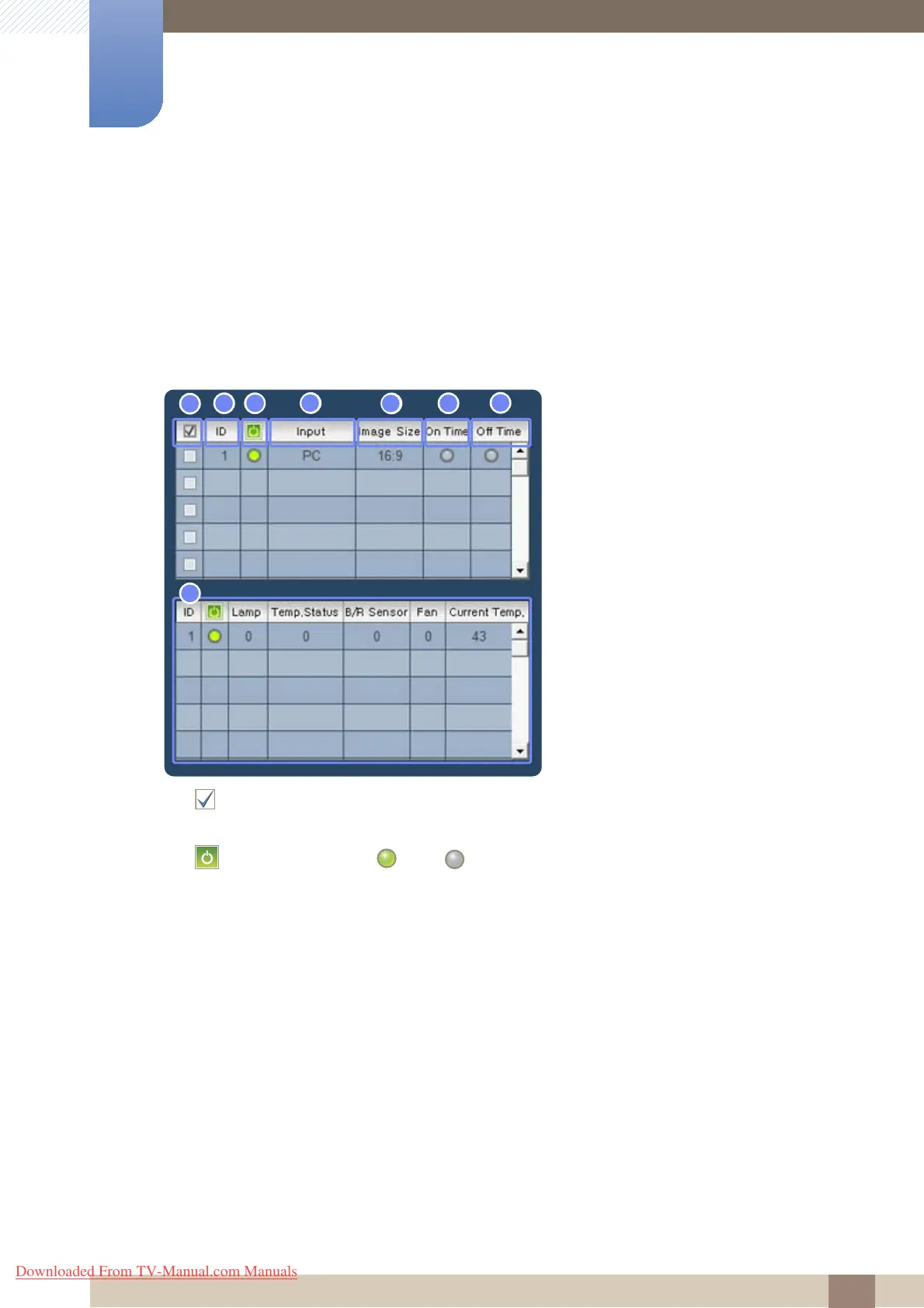 3 : View the power (ON ( )/OFF ( )) status of a connected display.