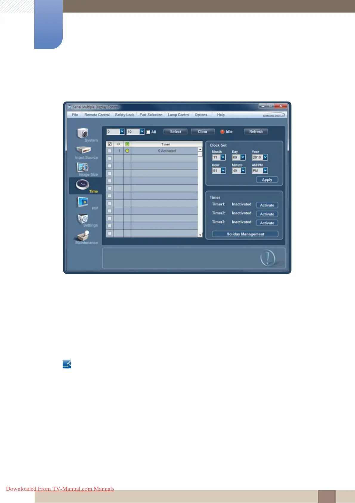 Set Timer1, Timer2, Timer3, and Holiday Management.