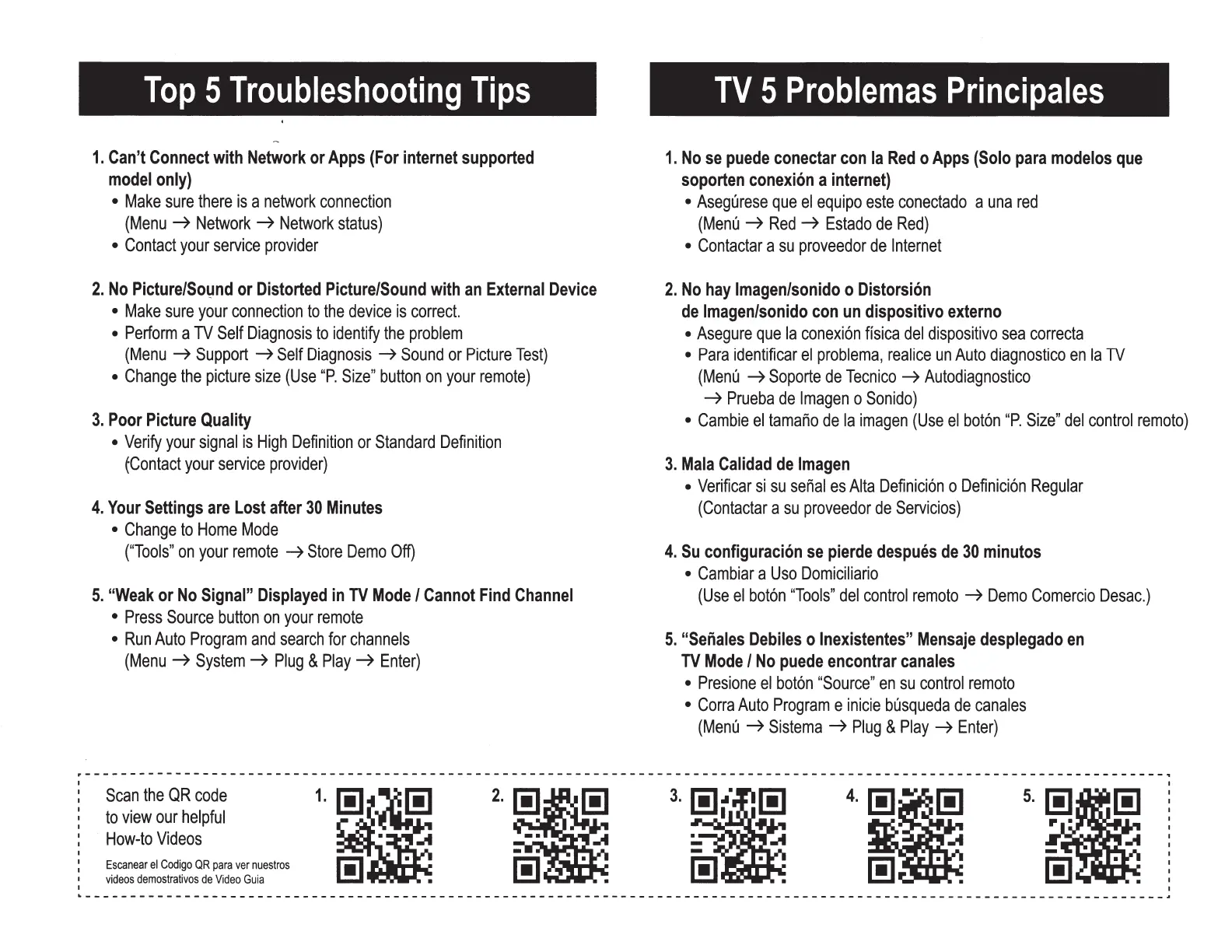 Samsung 403 - Top 5 Troubleshooting Tips; Cant Connect with Network or Apps; No Picture;Sound or Distorted Picture;Sound with External Device; Poor Picture Quality