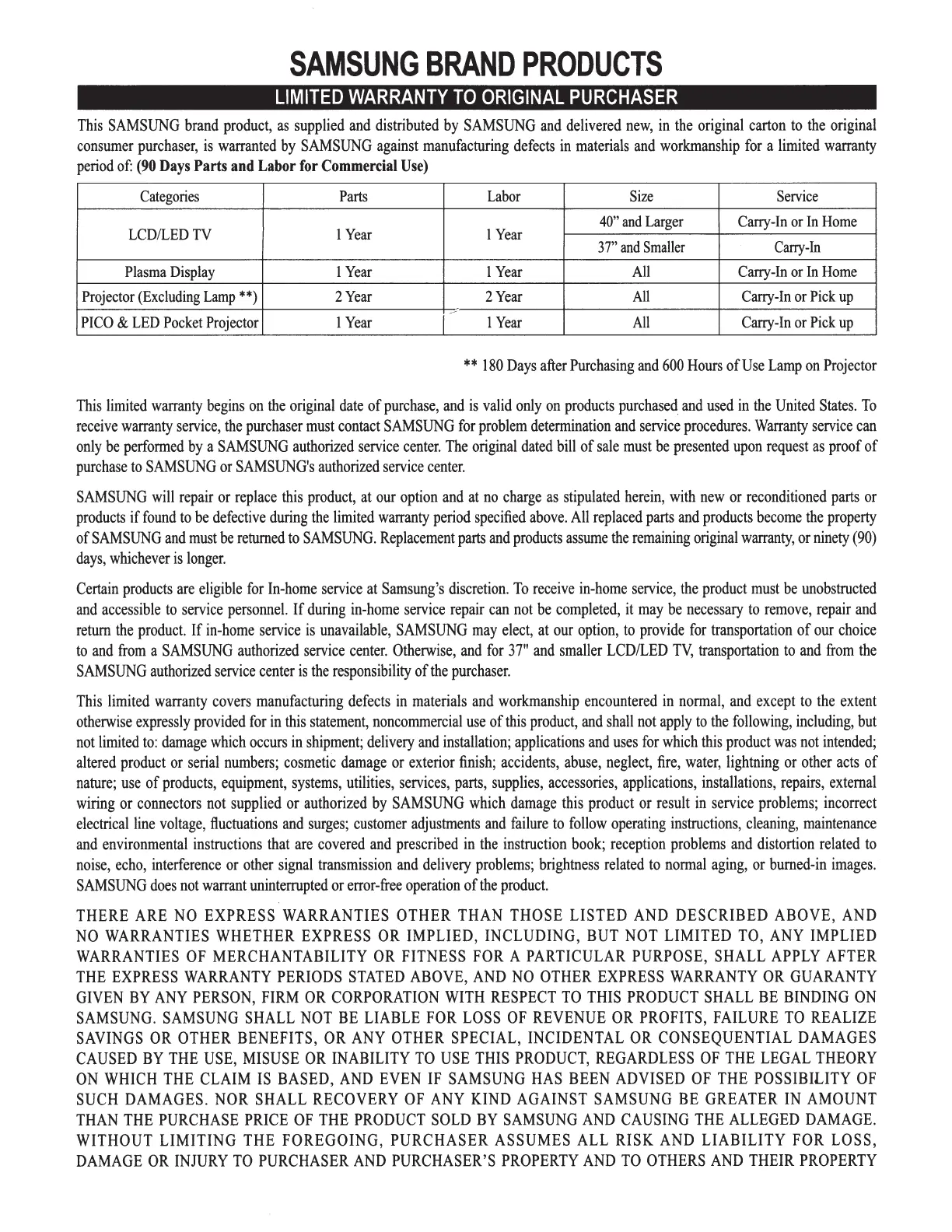 Samsung 403 - SAMSUNG BRAND PRODUCTS LIMITED WARRANTY TO ORIGINAL PURCHASER