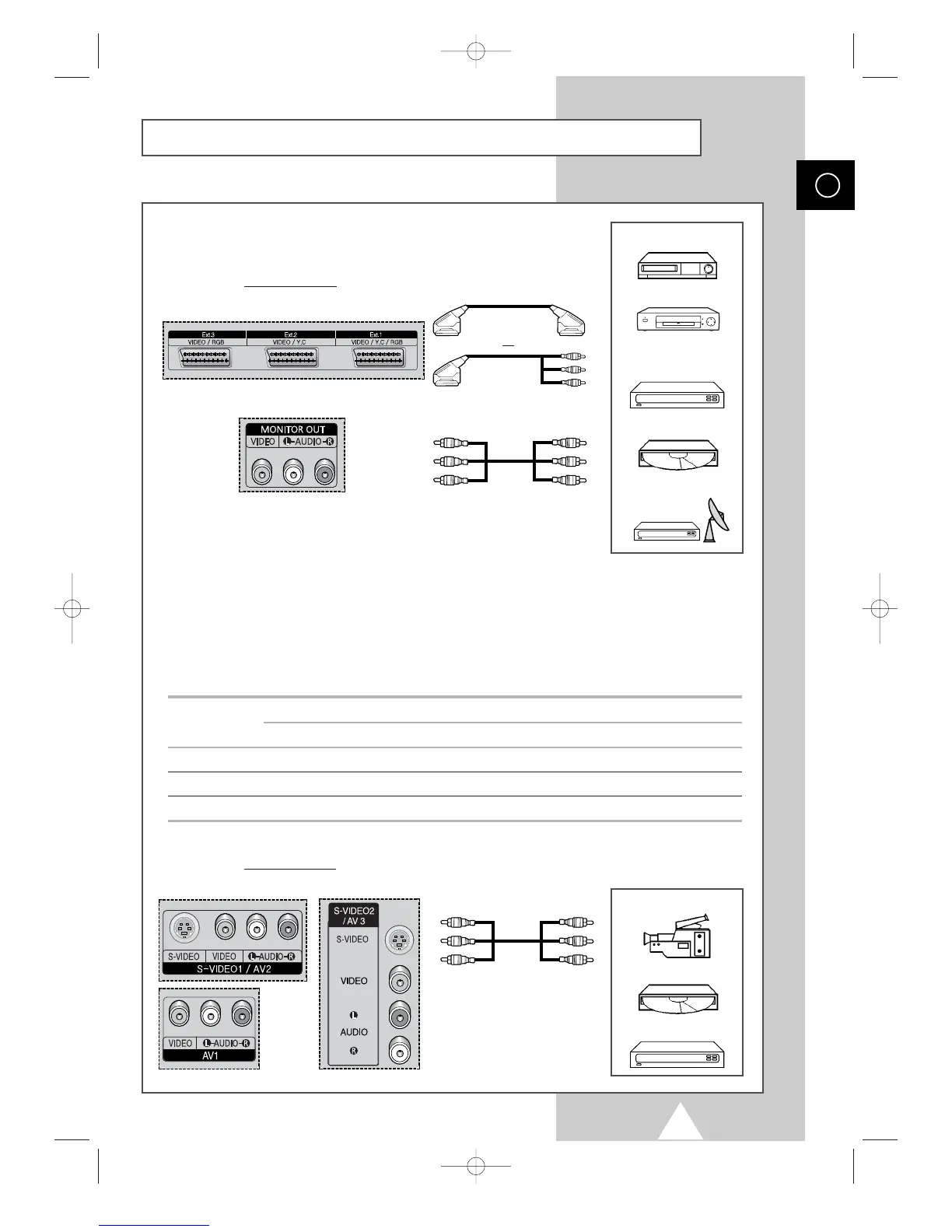 “MONITOR OUT” are used for the equipment with an RGB output, such as