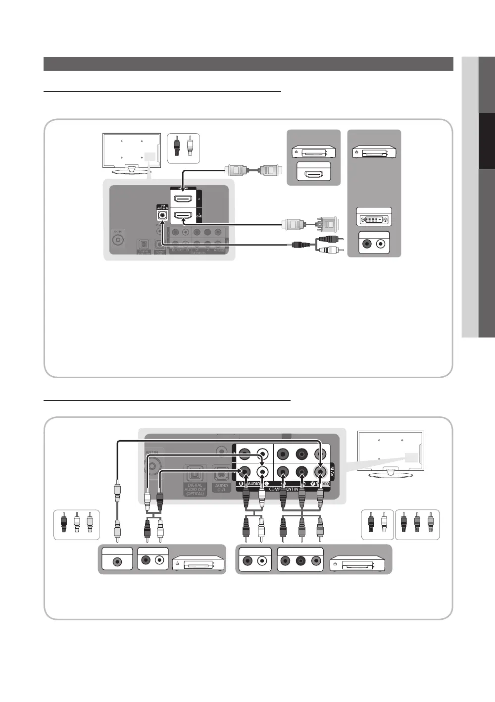 When using an HDMI/DVI cable connection, you must use the HDMI IN 1(DVI) jack for video. A DVD, Blu-ray