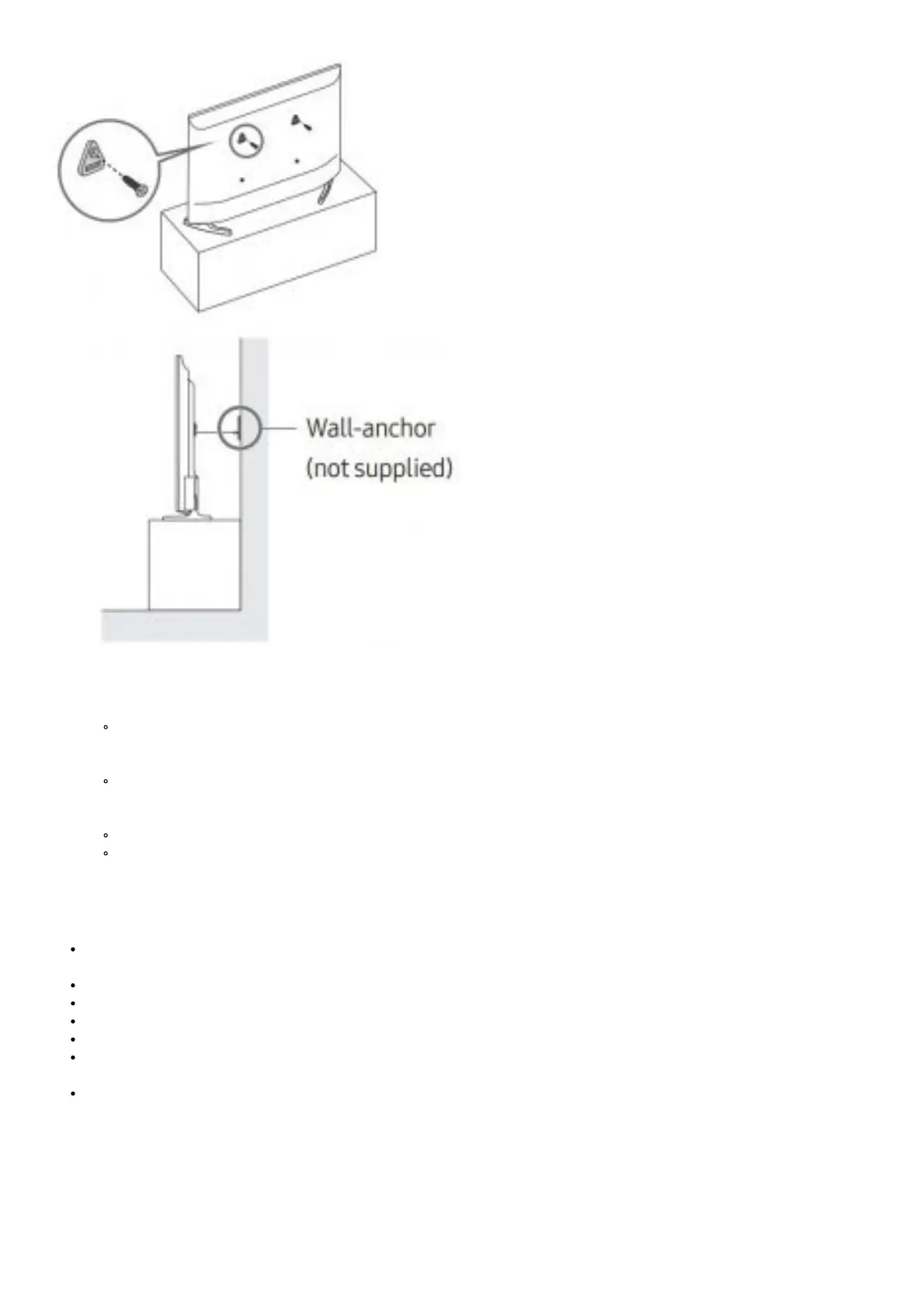 3. Connect the brackets fixed to the TV and the brackets fixed to the wall with a durable, heavy-duty string, and then tie the string