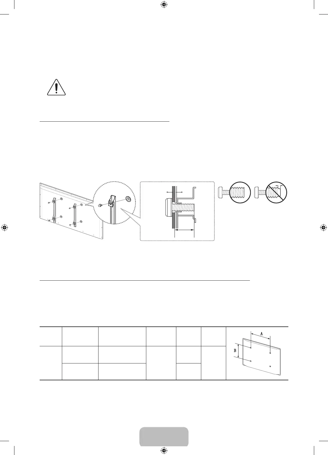 Cuando use un montaje de pared de terceros, tenga en cuenta la longitud del tornillo de ensamble (C) que se muestra a