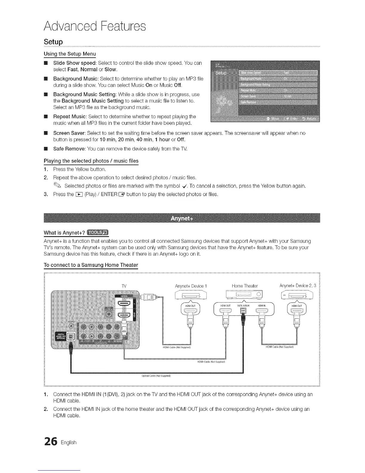 TV's remote. The Anynet+ system can be used only with Samsung devices that have the Anynet+ feature, To be sure your