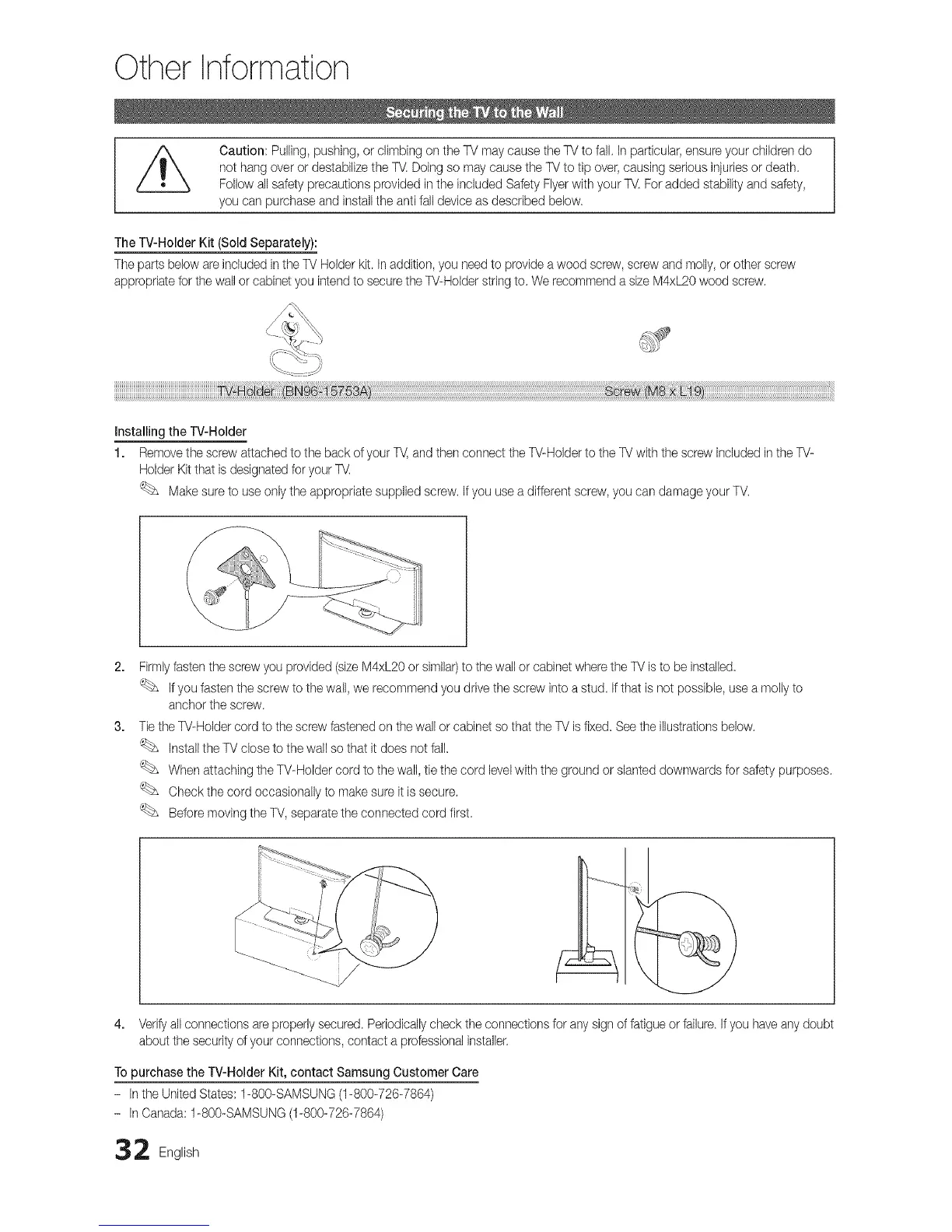 To purchase the TV-Holder Kit, contact Samsung Customer Care