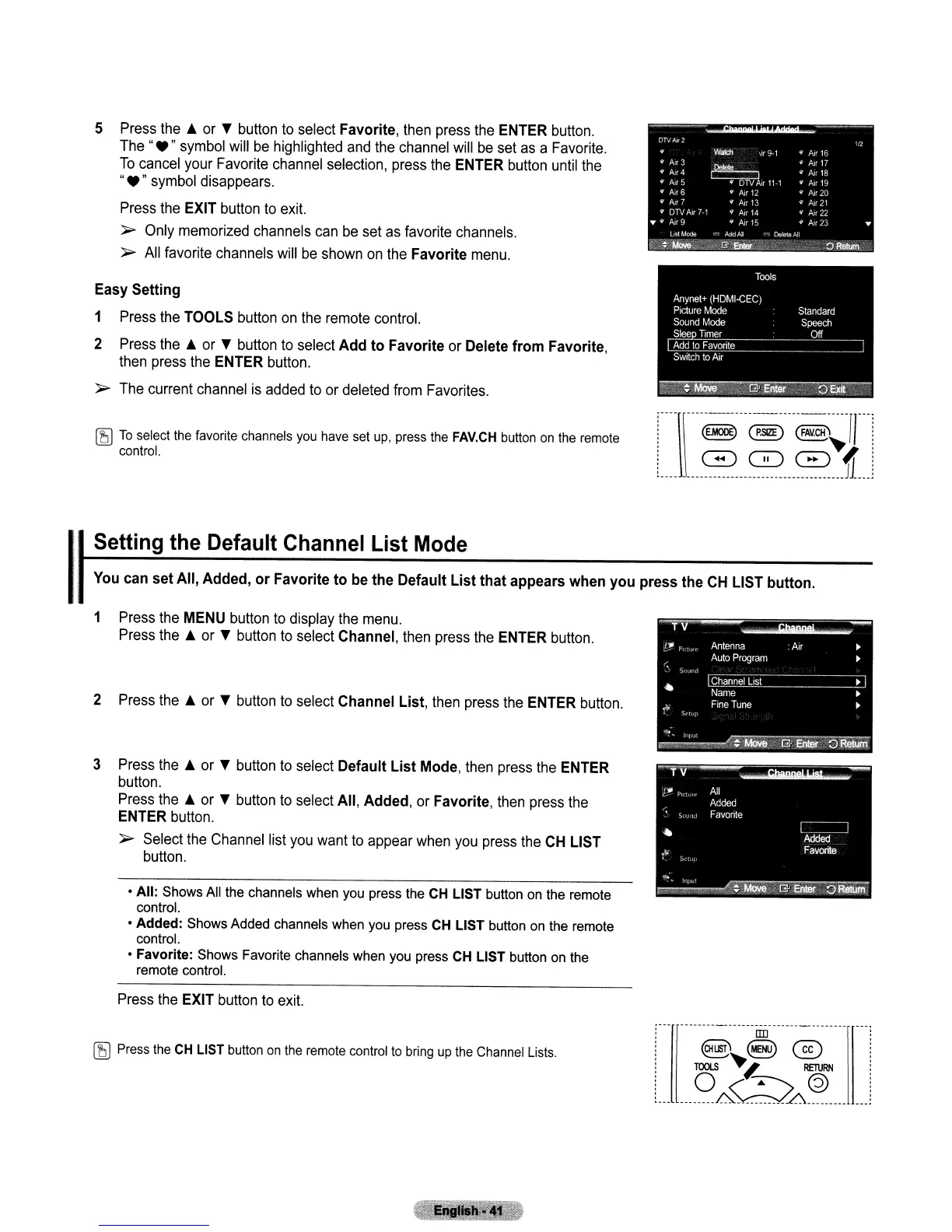 • Added: Shows Added channels when you press CH LIST button on the remote