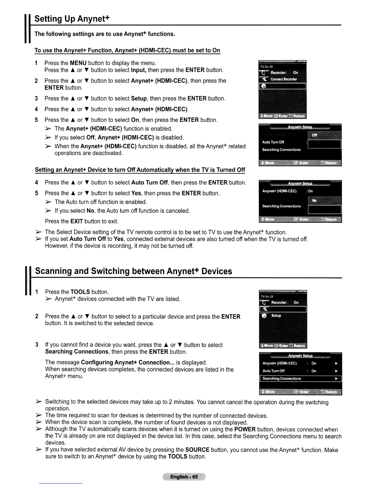 Samsung 450 - Setting up Anynet; Scanning and Switching between Anynet+ Devices