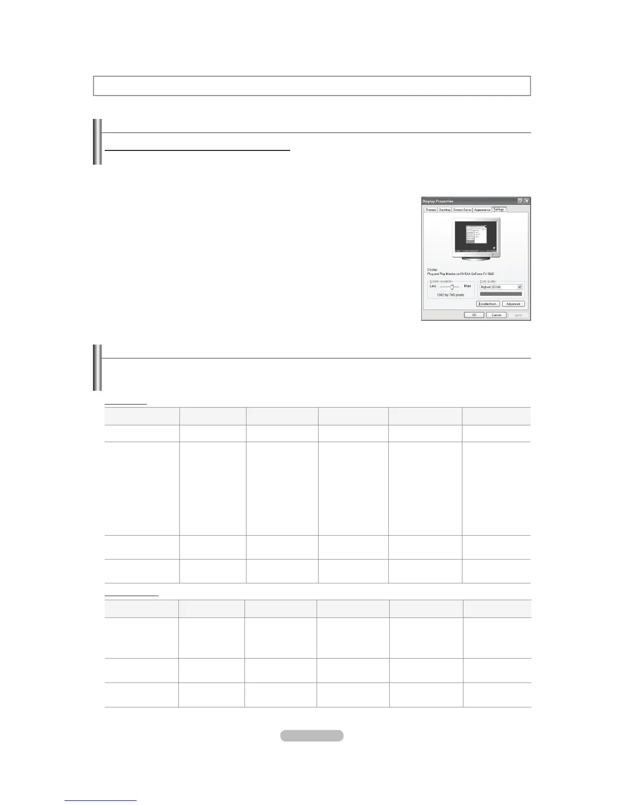 video. For the display modes listed below, the screen image has been optimized during manufacturing.
